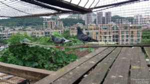 为提高棚内鸽子的质量,引进了一对成绩鸽的种蛋,3个月的小雌鸽与棚内的单雄配对了并开始踩背了。