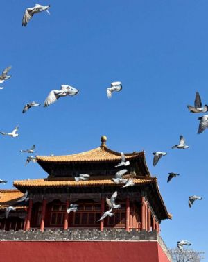 故宫午门偶遇赛鸽家飞