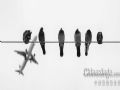 栖息在电线上的鸽群