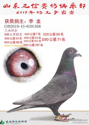 介绍:2019年6月底出壳,140公里鸽粮赛获得31名11月4日320公里获得53名11月9日特比环第一关全