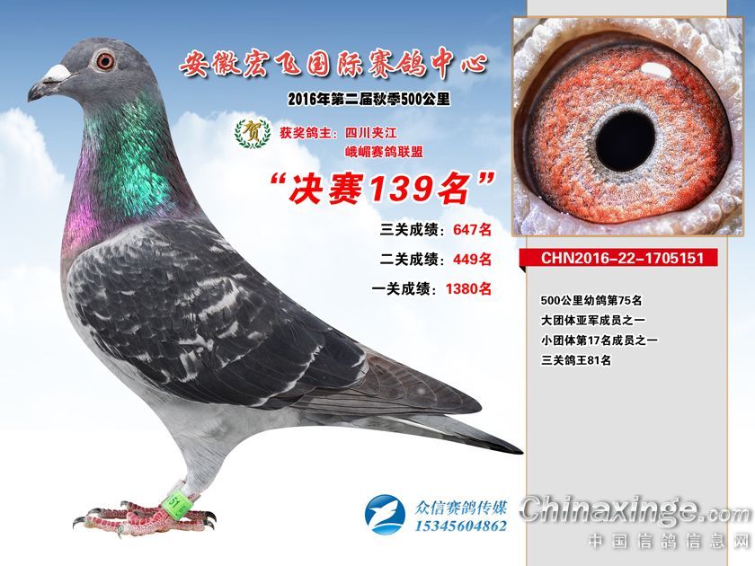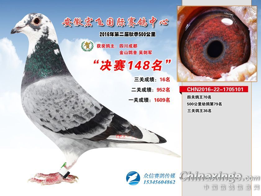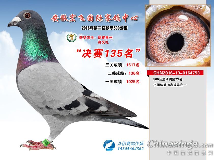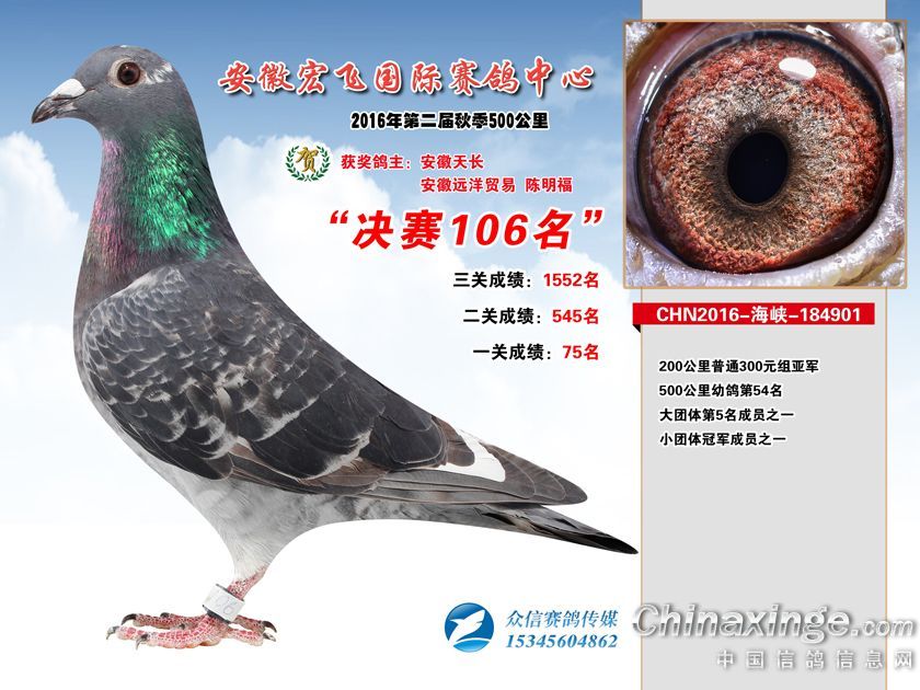作品说明: 安徽宏飞赛鸽中心2016年获奖鸽101-150名