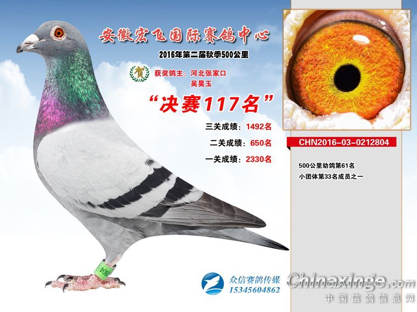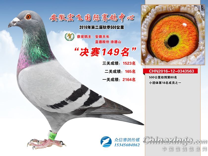 安徽宏飞赛鸽中心2016年获奖鸽101-150名