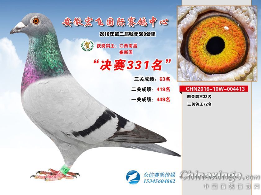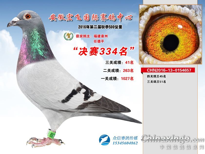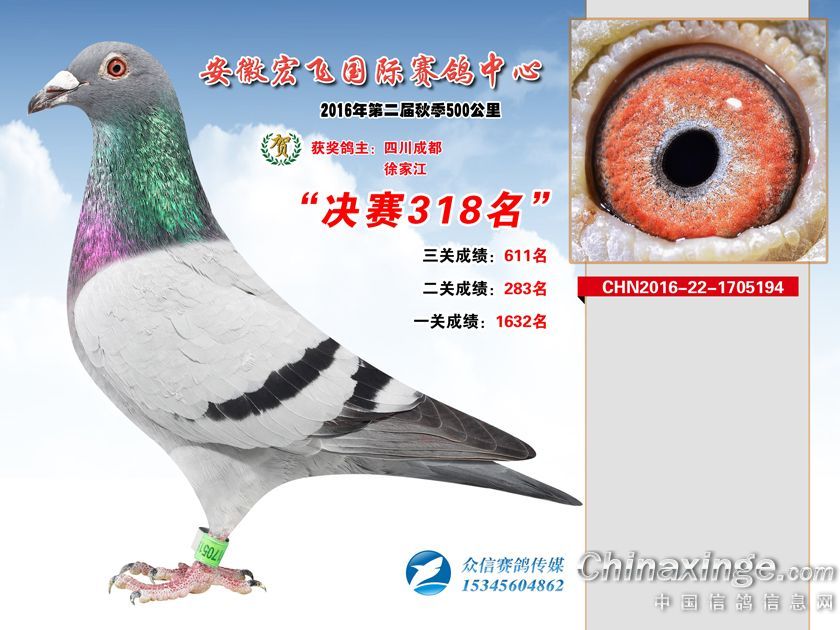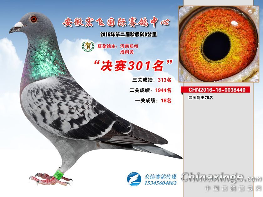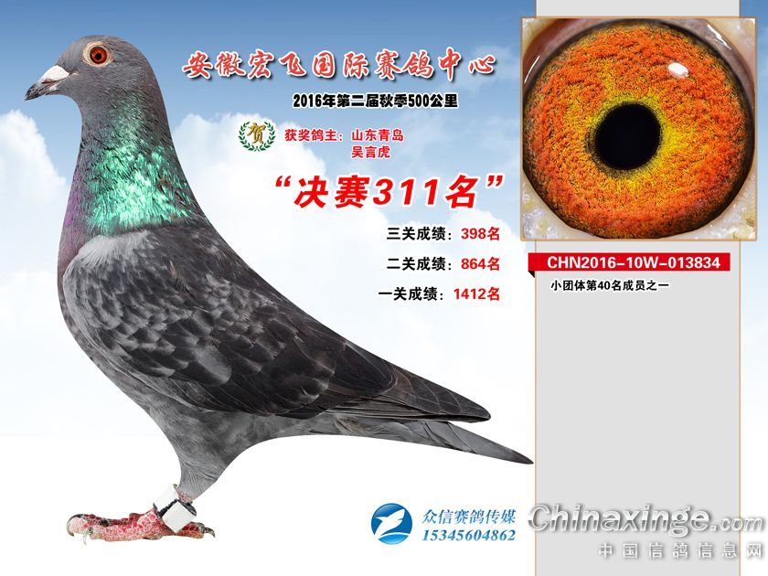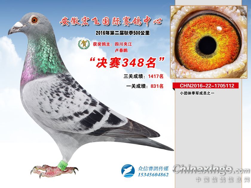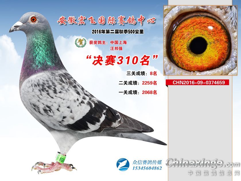 作品说明: 安徽宏飞赛鸽中心2016年获奖鸽301-350名