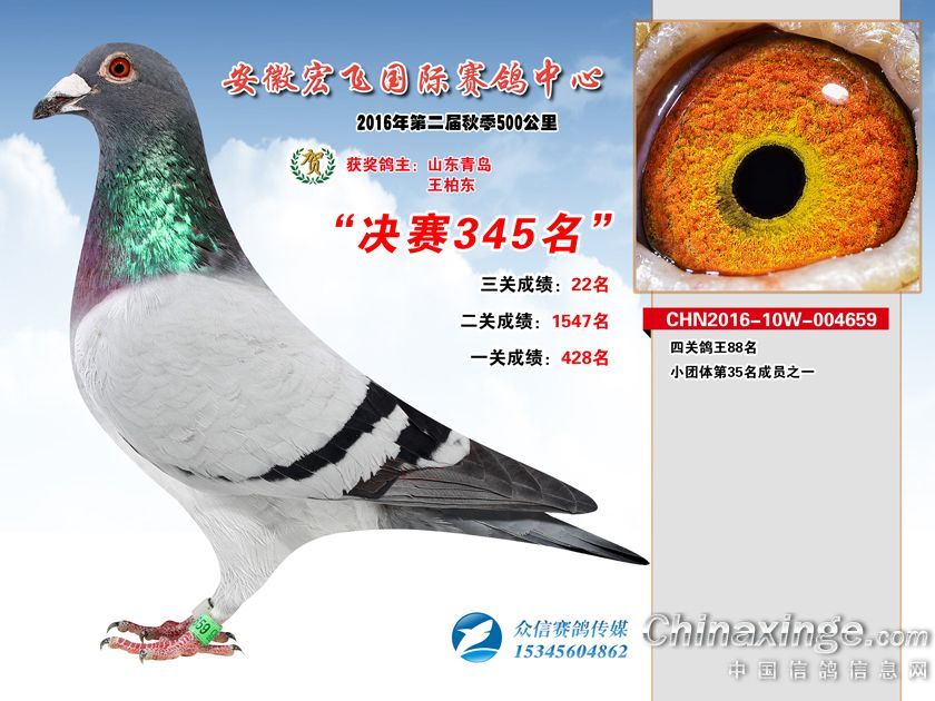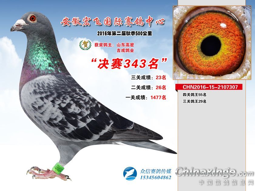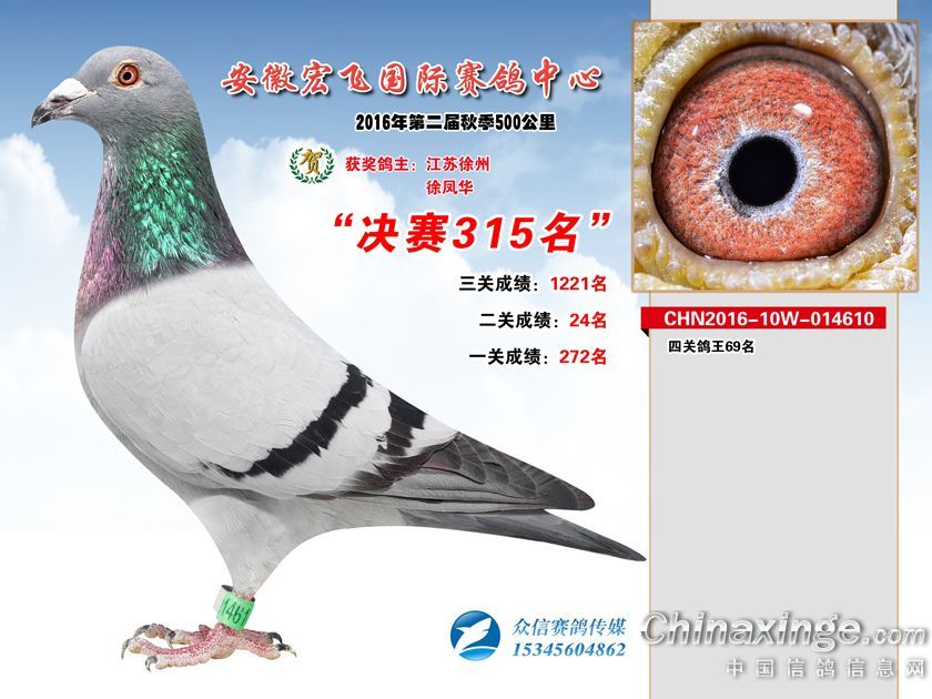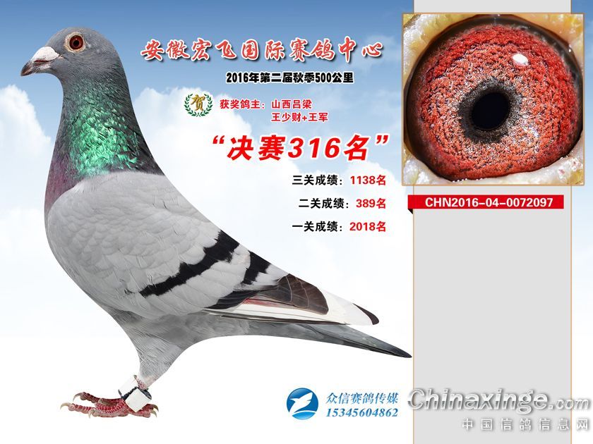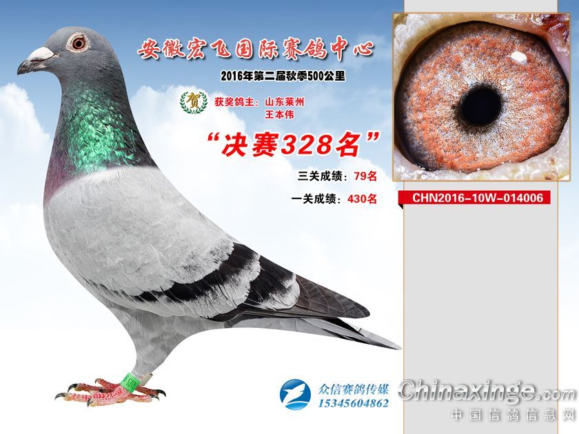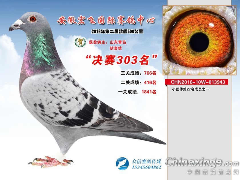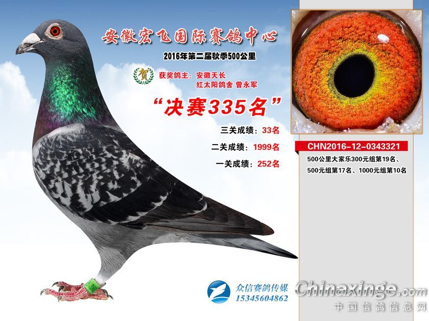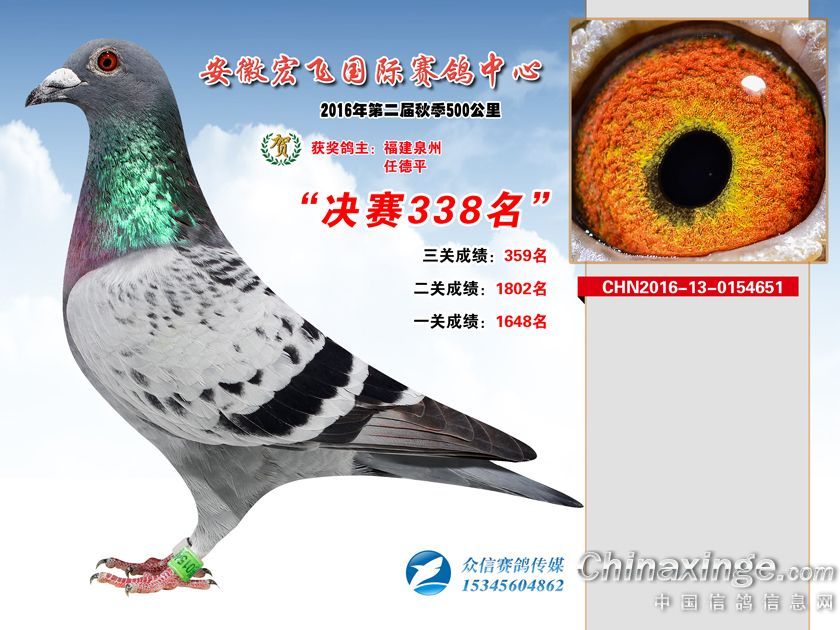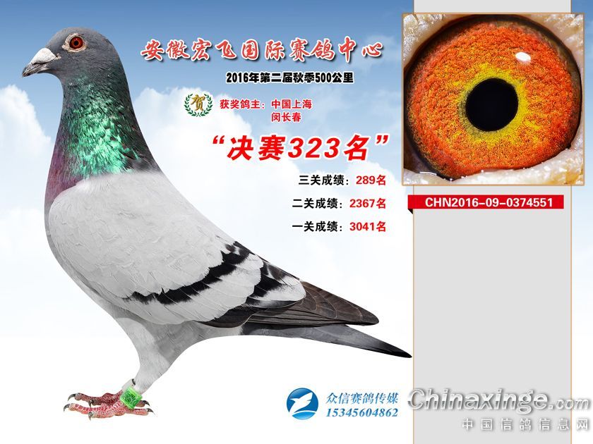 安徽宏飞赛鸽中心2016年获奖鸽301-350名