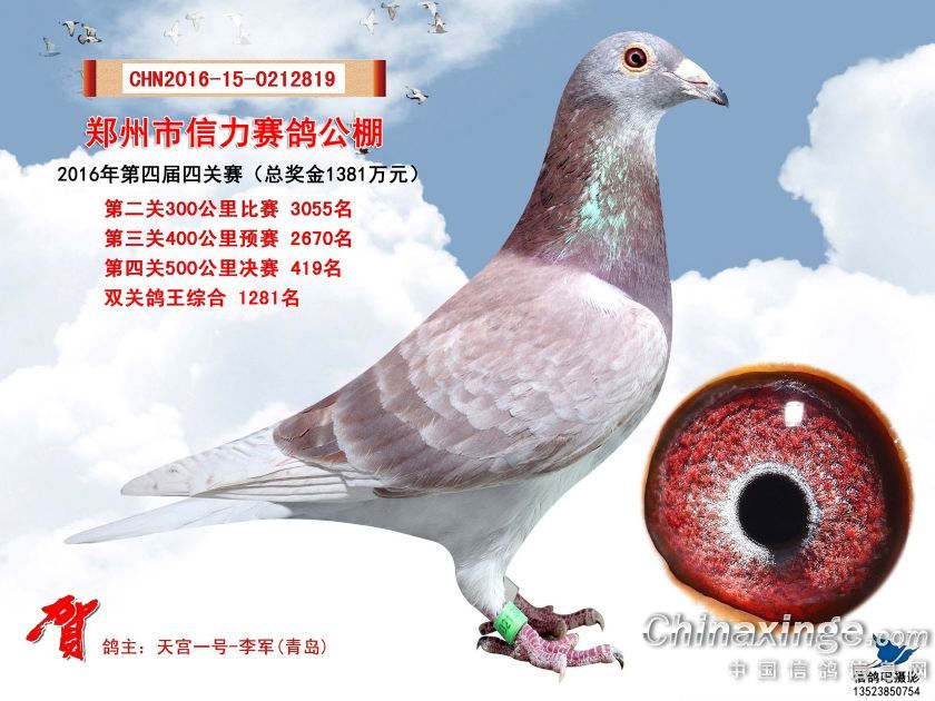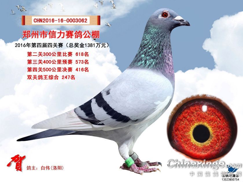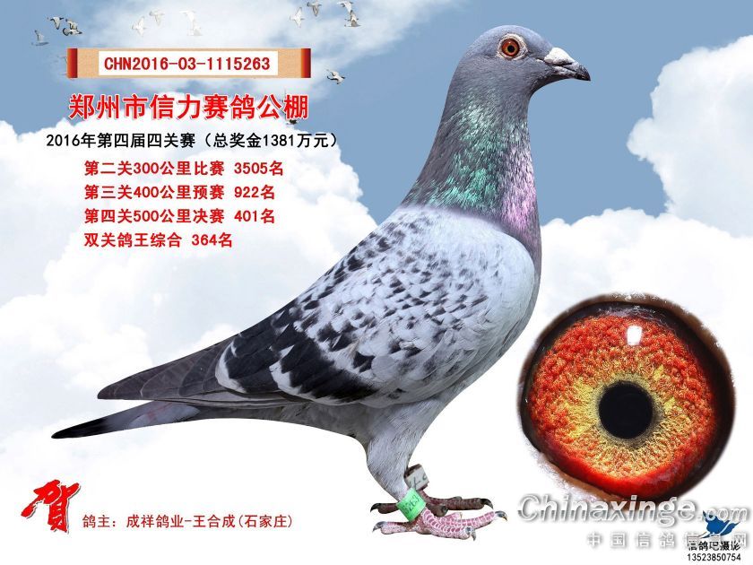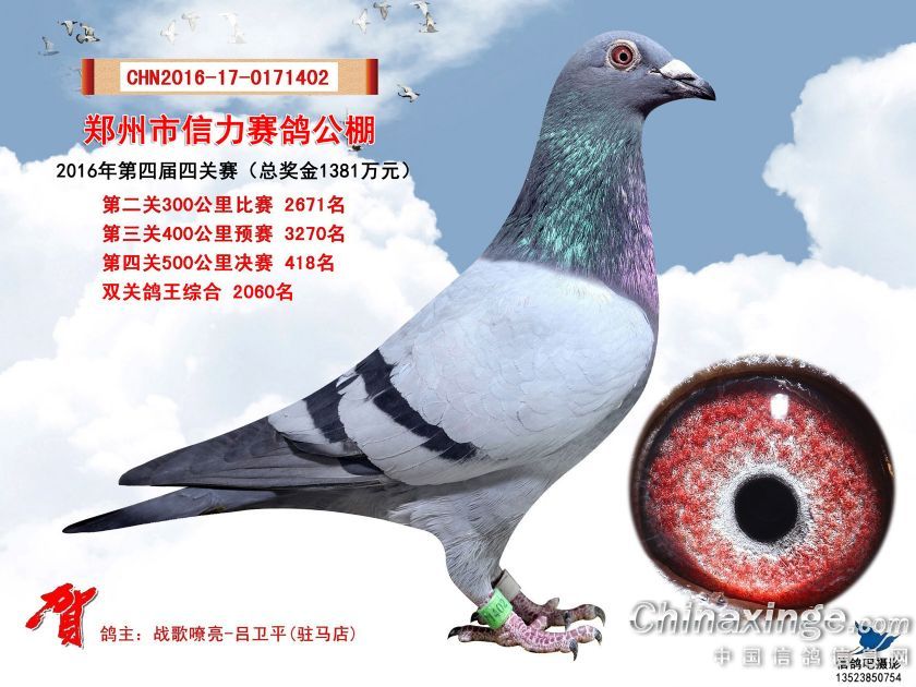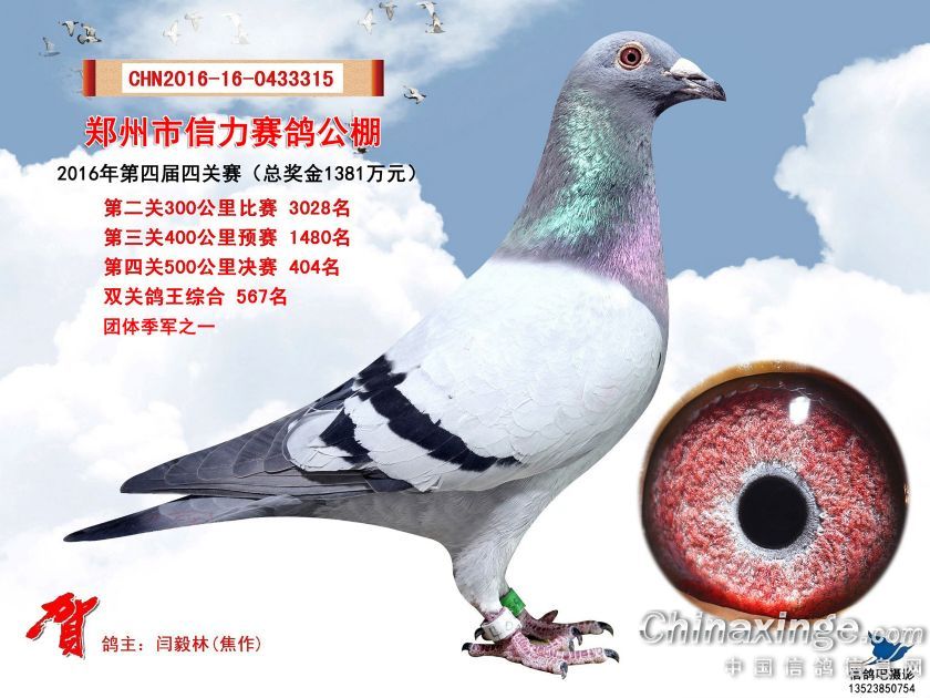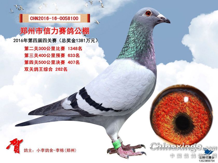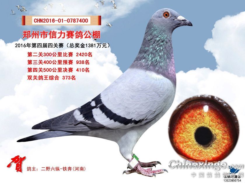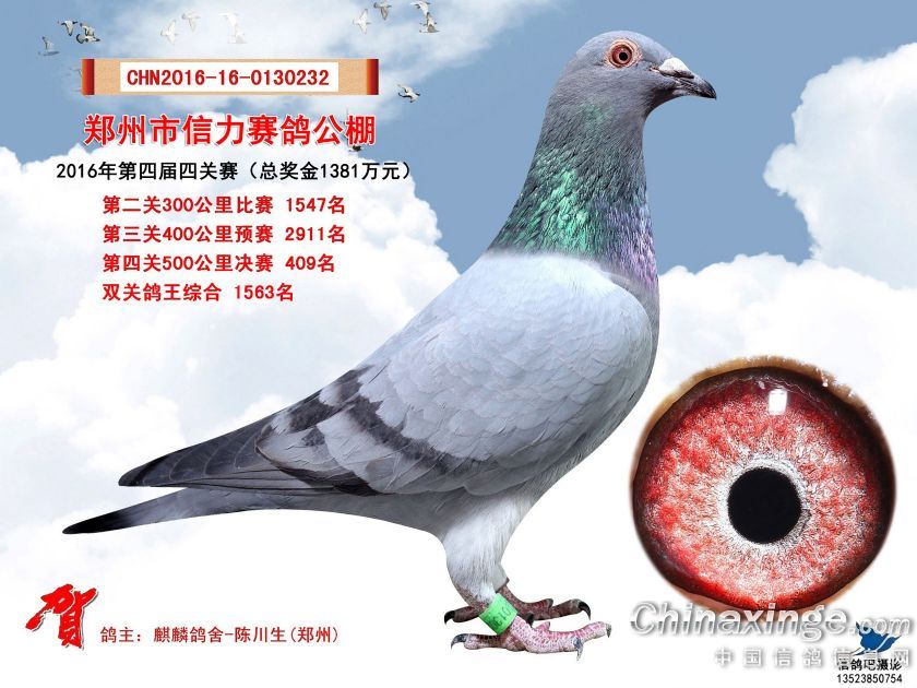2016年郑州市信力赛鸽公棚获奖鸽照片391-420