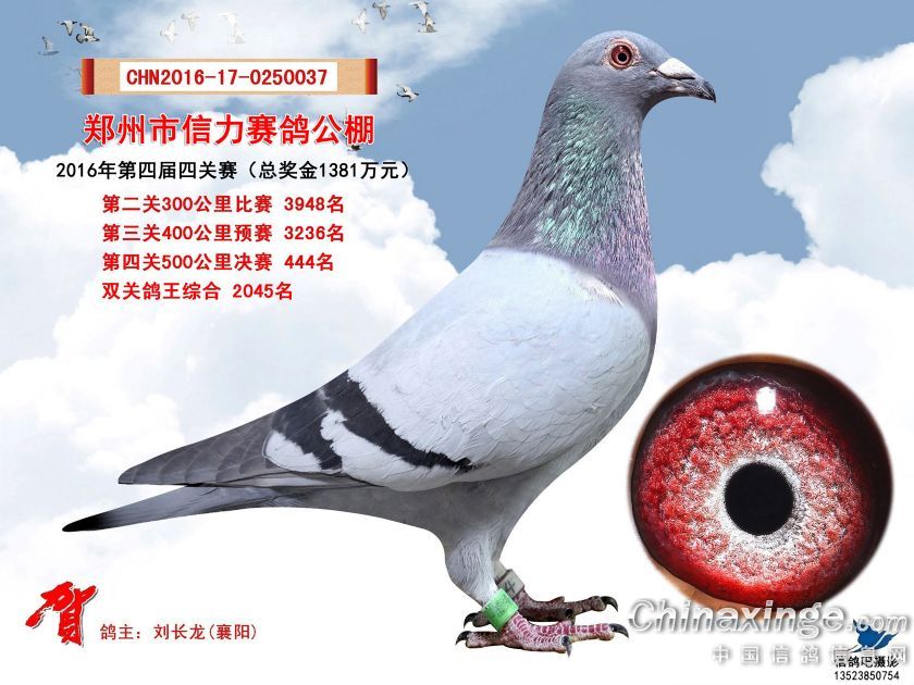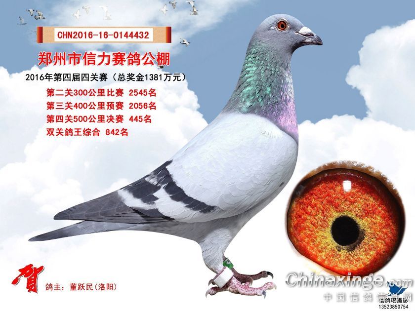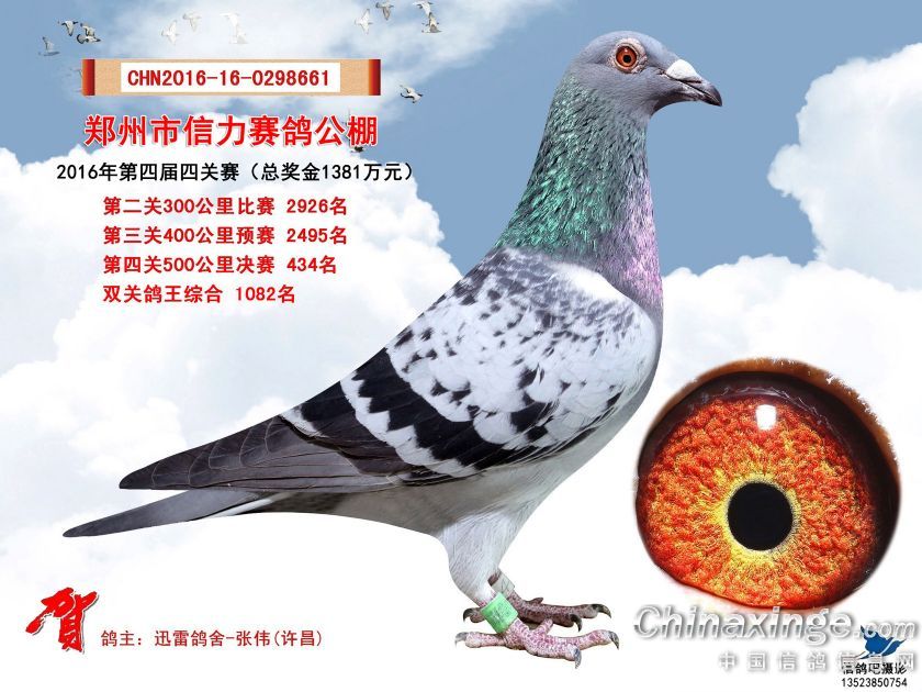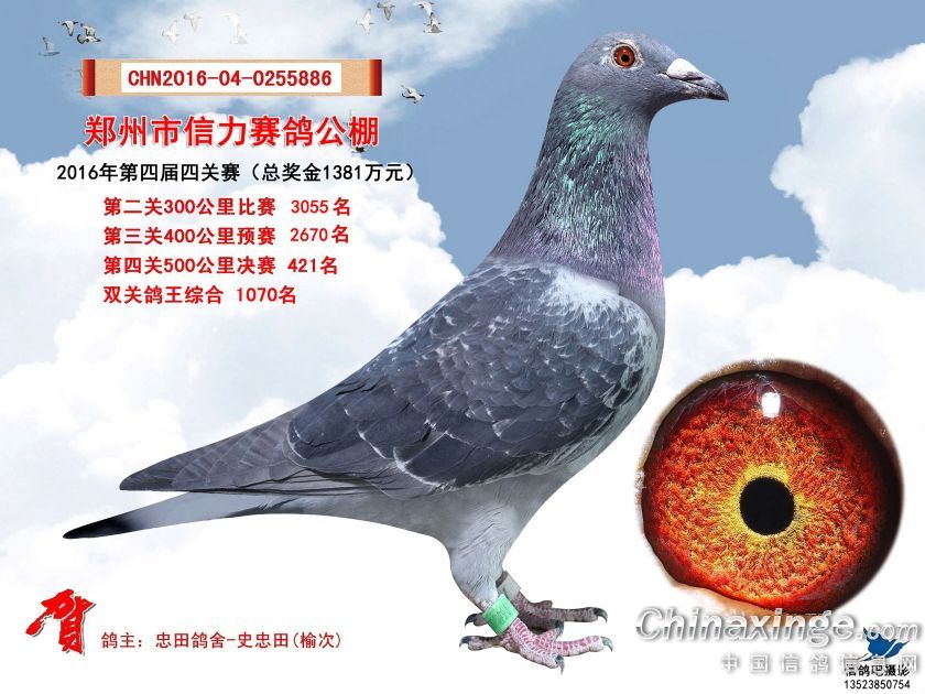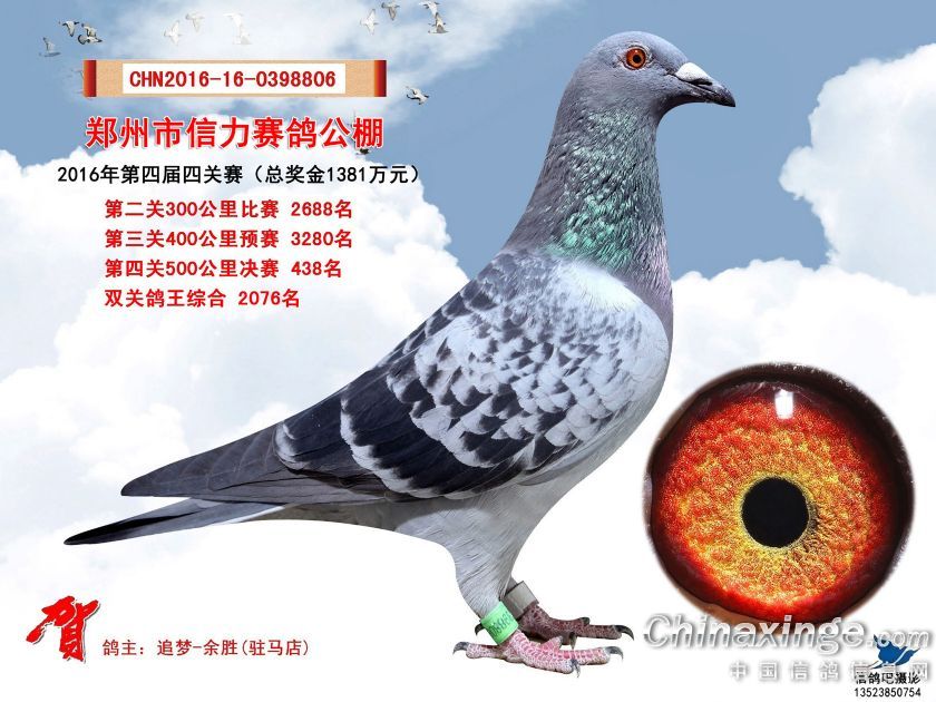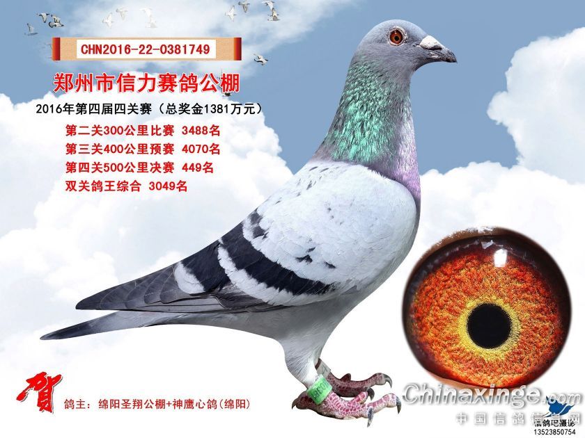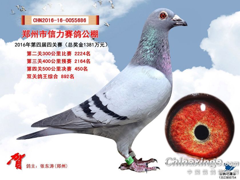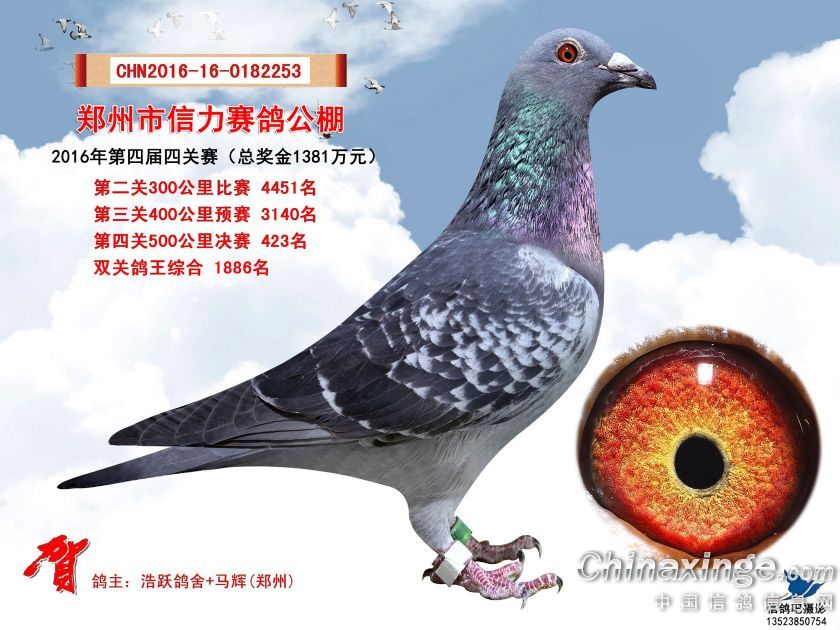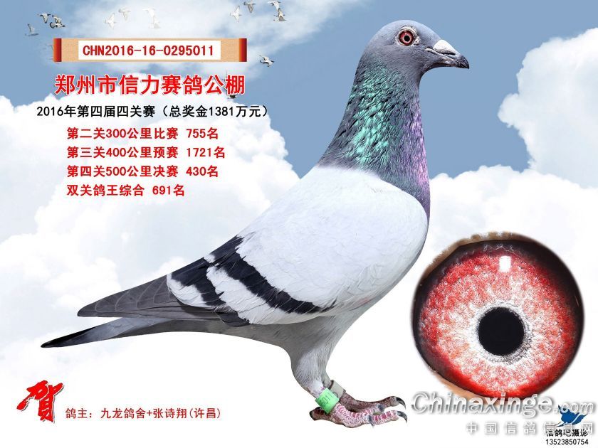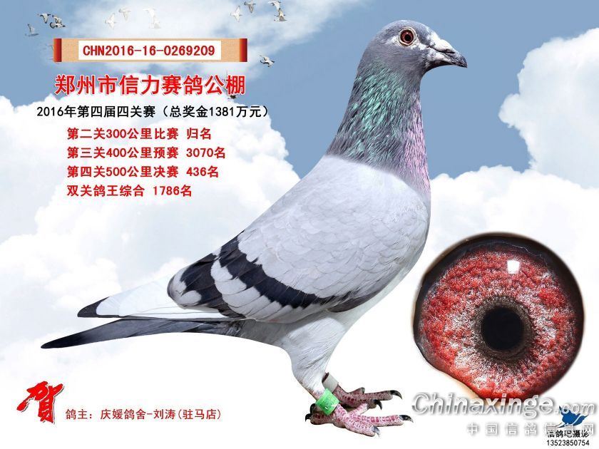 2016年郑州市信力赛鸽公棚获奖鸽照片421-450