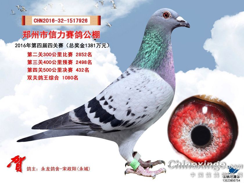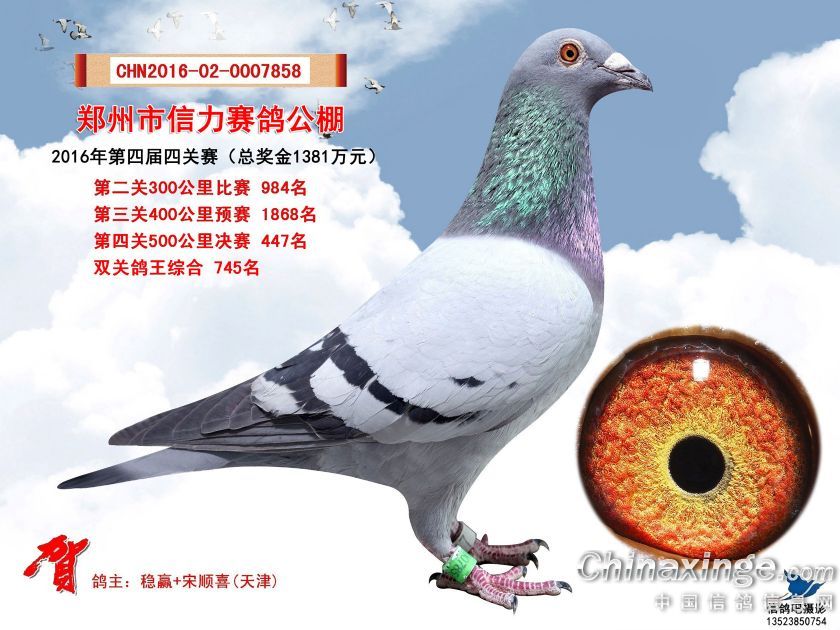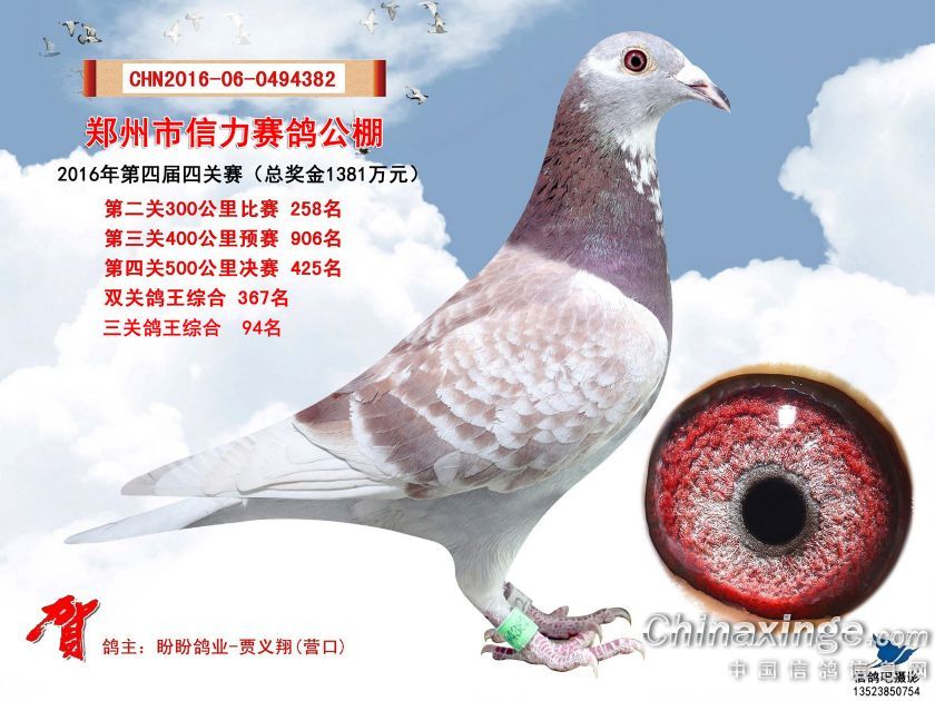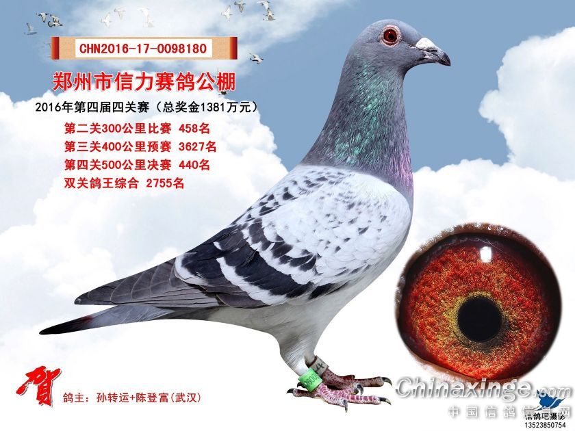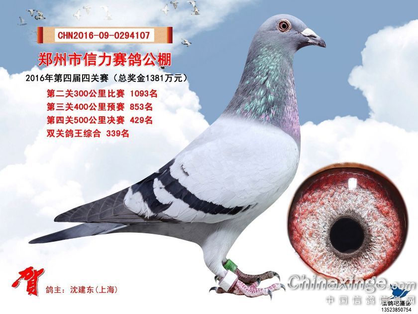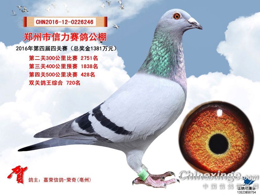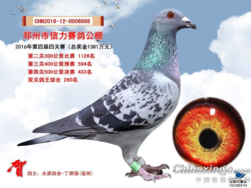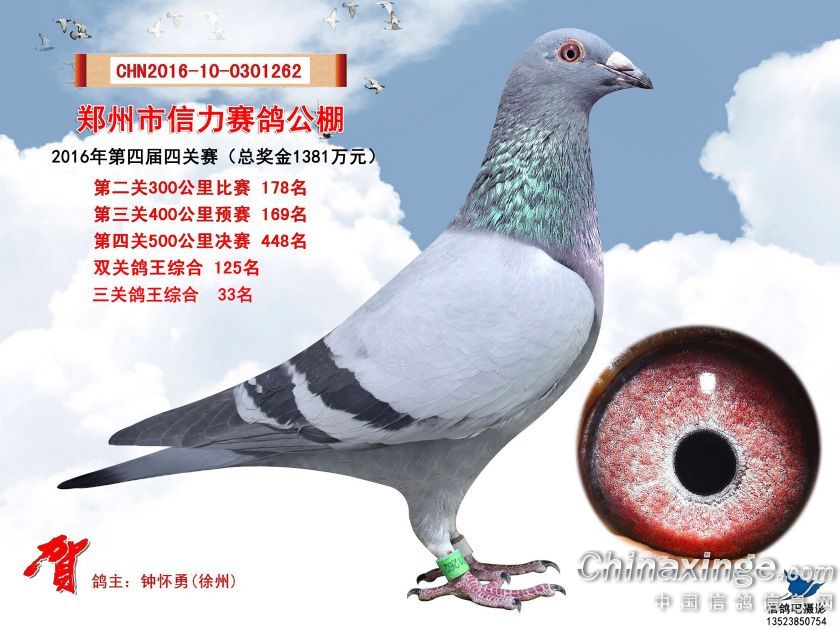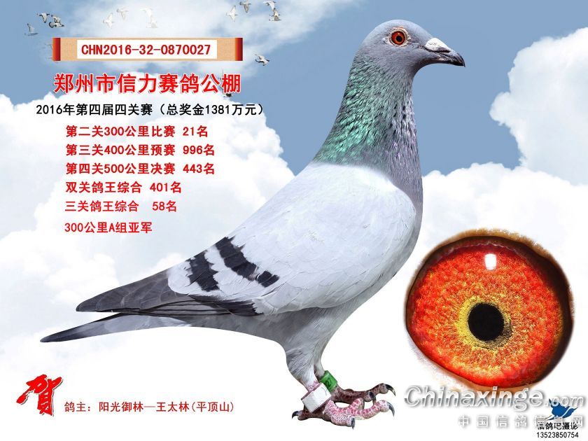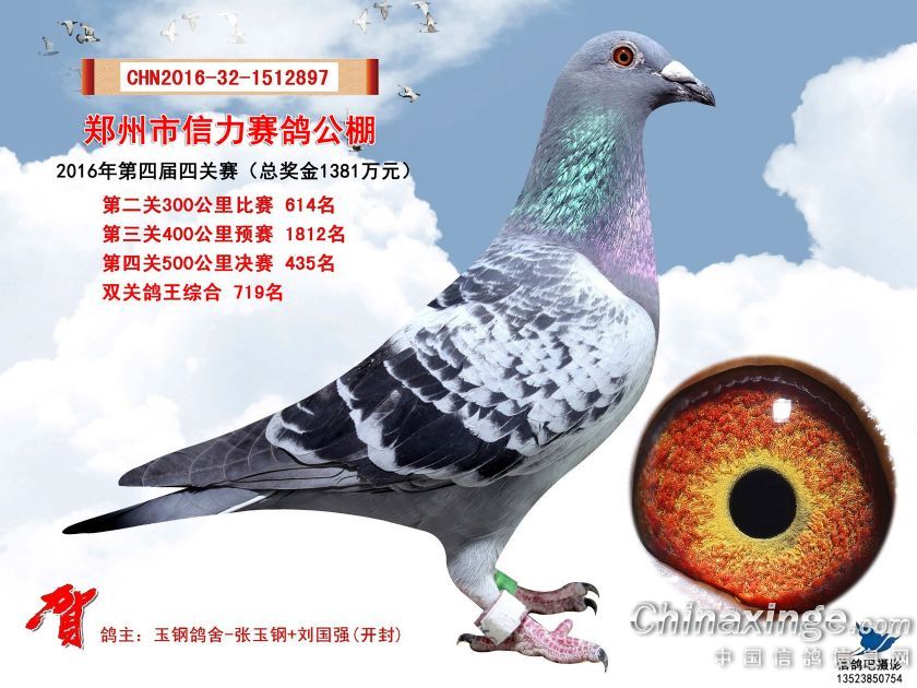 2016年郑州市信力赛鸽公棚获奖鸽照片421-450