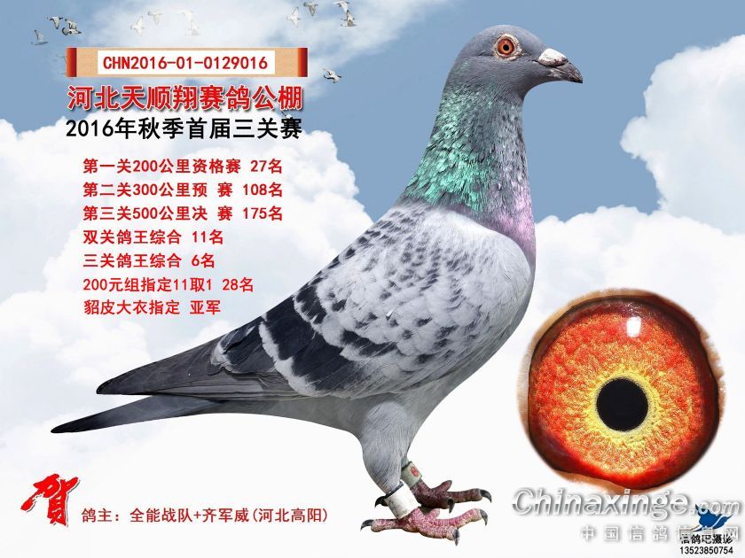 2016年河北天顺翔赛鸽公棚获奖鸽照片151-180