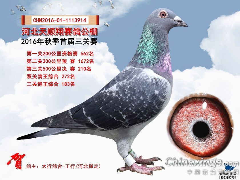 作品说明: 2016年河北天顺翔赛鸽公棚获奖鸽照片181-210