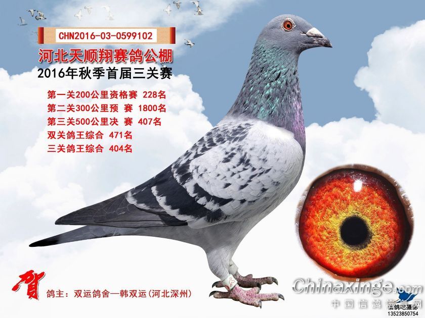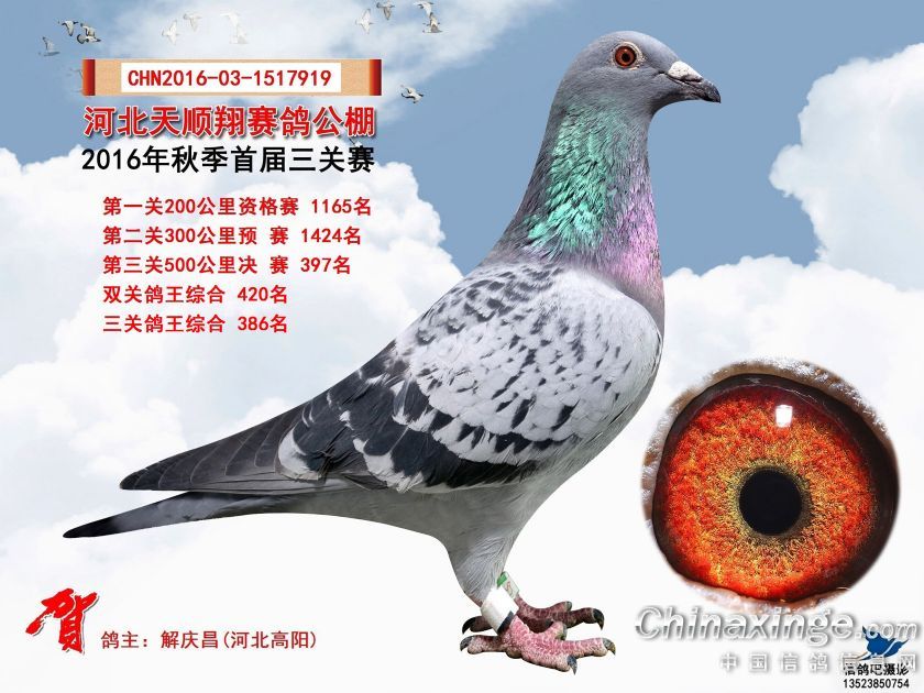 作品说明: 2016年河北天顺翔赛鸽公棚获奖鸽照片391-420