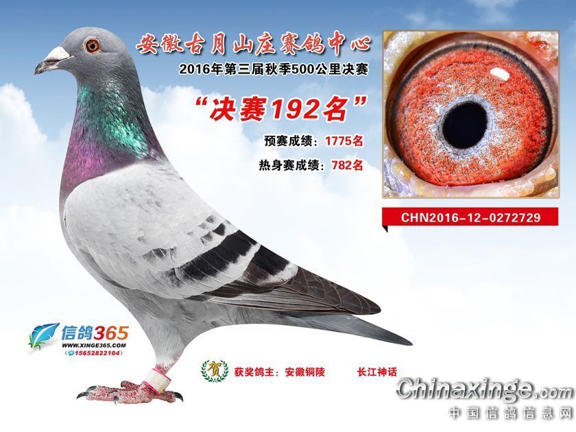 作品说明: 安徽古月山庄赛鸽中心2016年获奖鸽欣赏151-200名