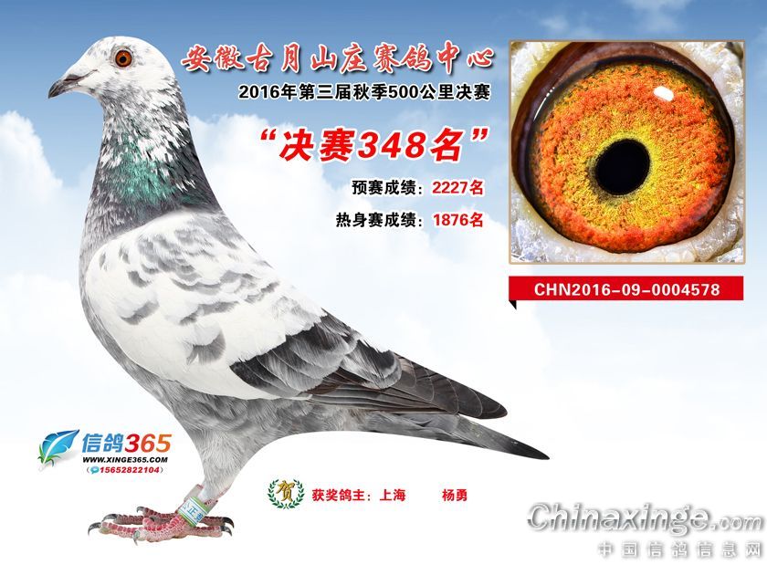 安徽古月山庄赛鸽中心2016年获奖鸽欣赏301-350名