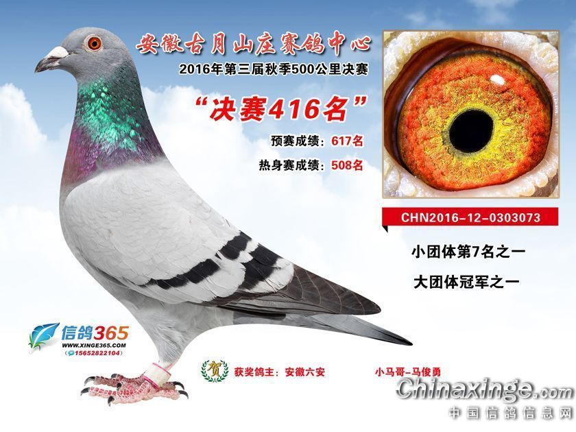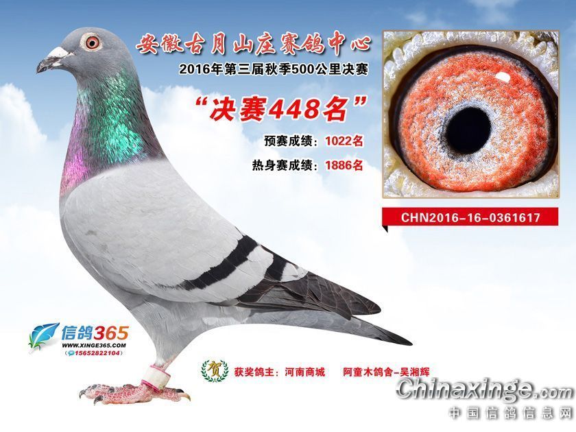 安徽古月山庄赛鸽中心2016年获奖鸽欣赏401-450名
