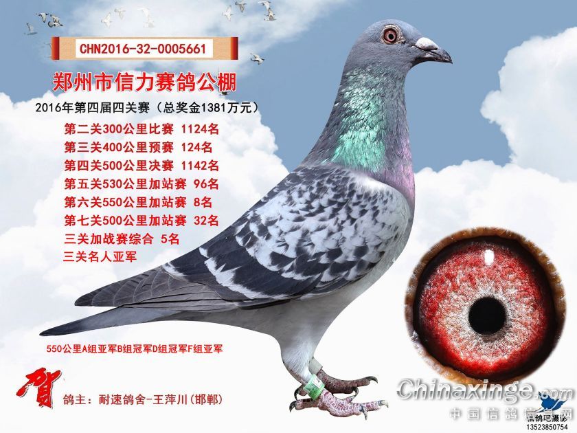 作品说明: 2016年郑州市信力赛鸽公棚加站赛获奖鸽照片1-30