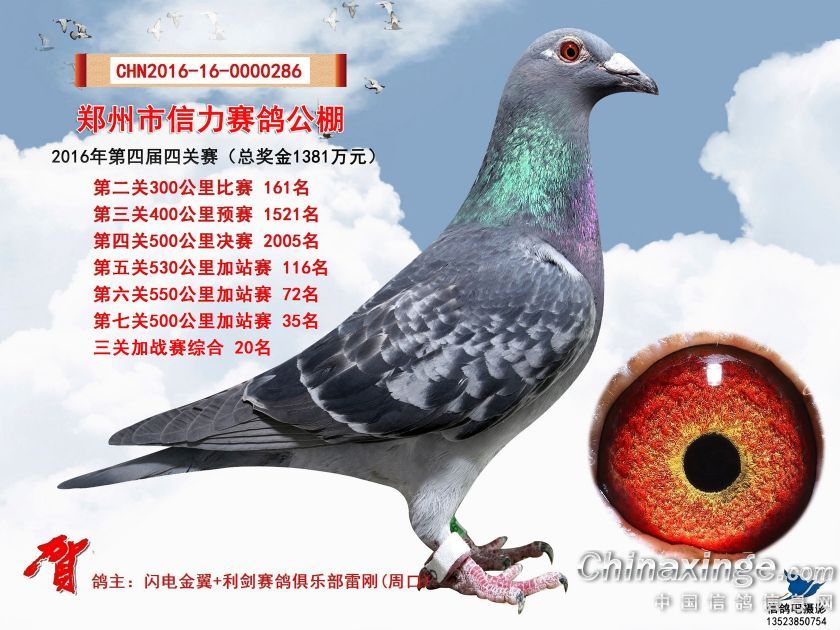 2016年郑州市信力赛鸽公棚加站赛获奖鸽照片1-30