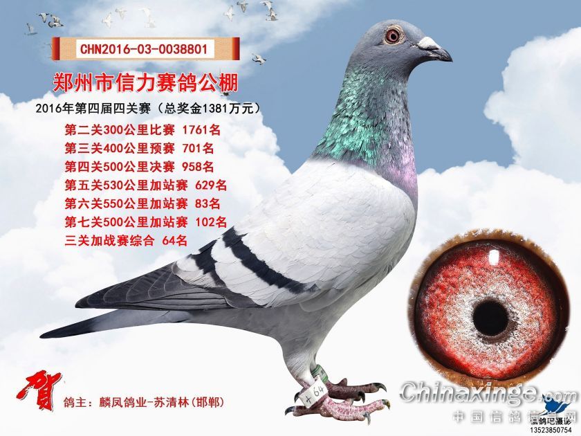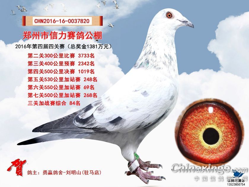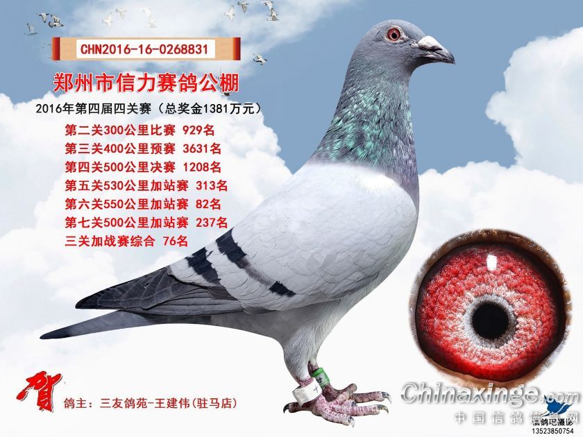 作品说明: 2016年郑州市信力赛鸽公棚加站赛获奖鸽照片61-90