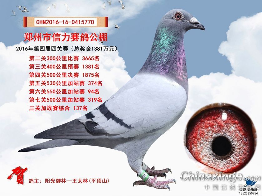 2016年郑州市信力赛鸽公棚加站赛获奖鸽照片121-150