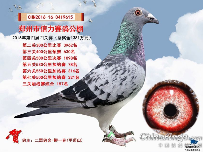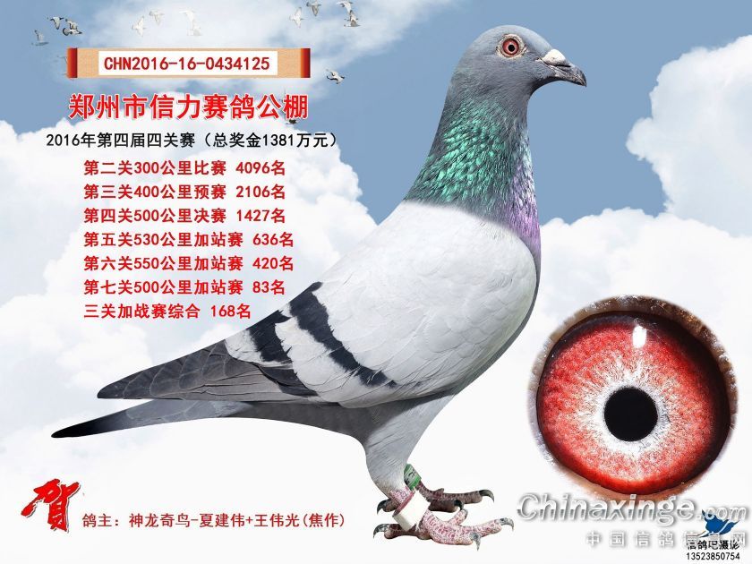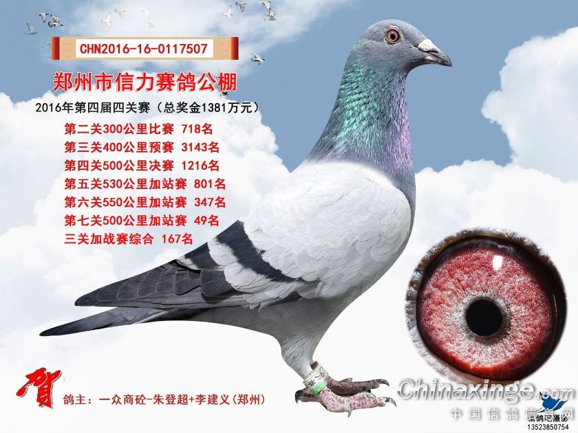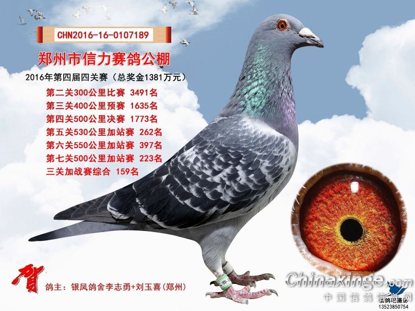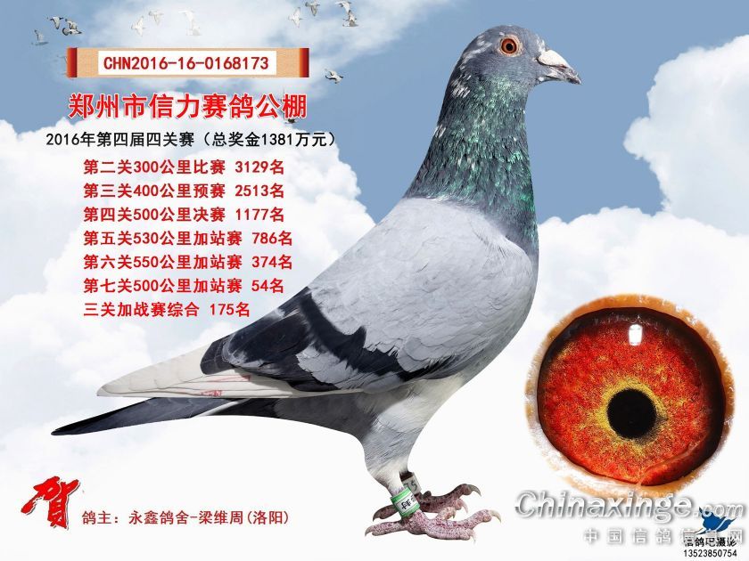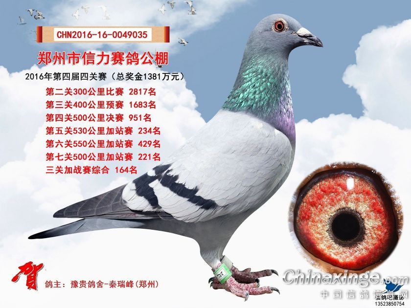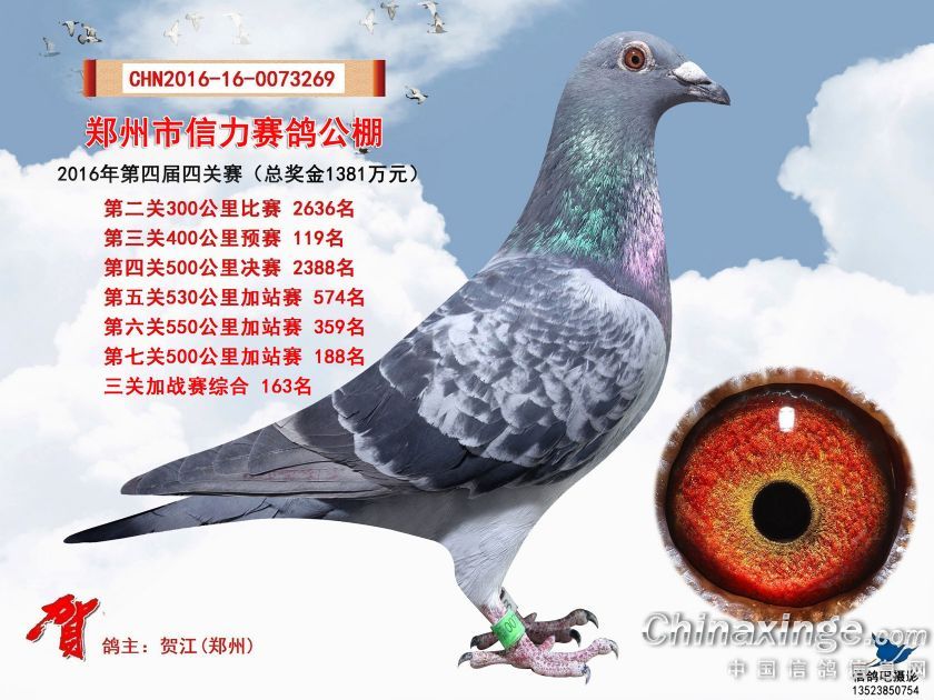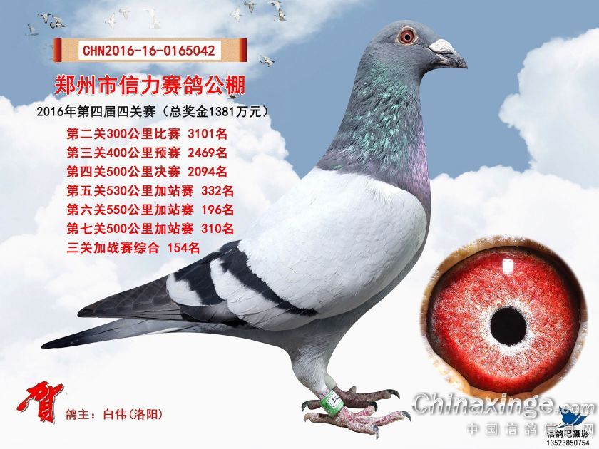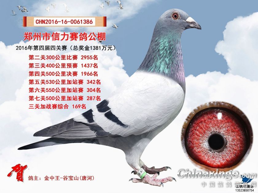 2016年郑州市信力赛鸽公棚加站赛获奖鸽照片151-175