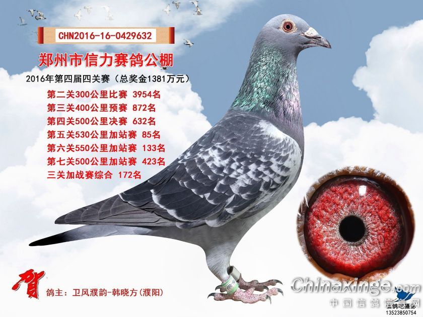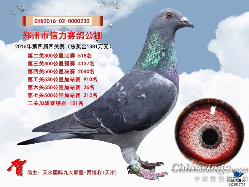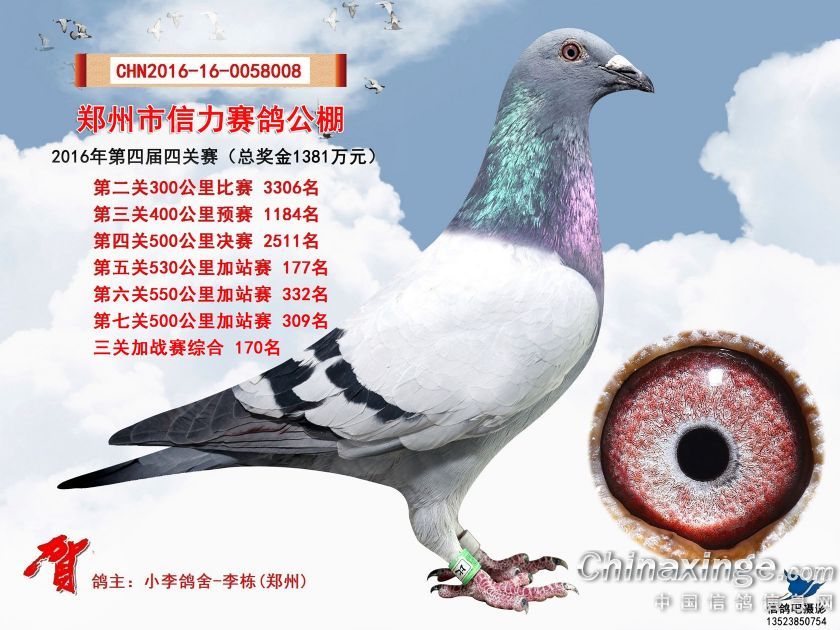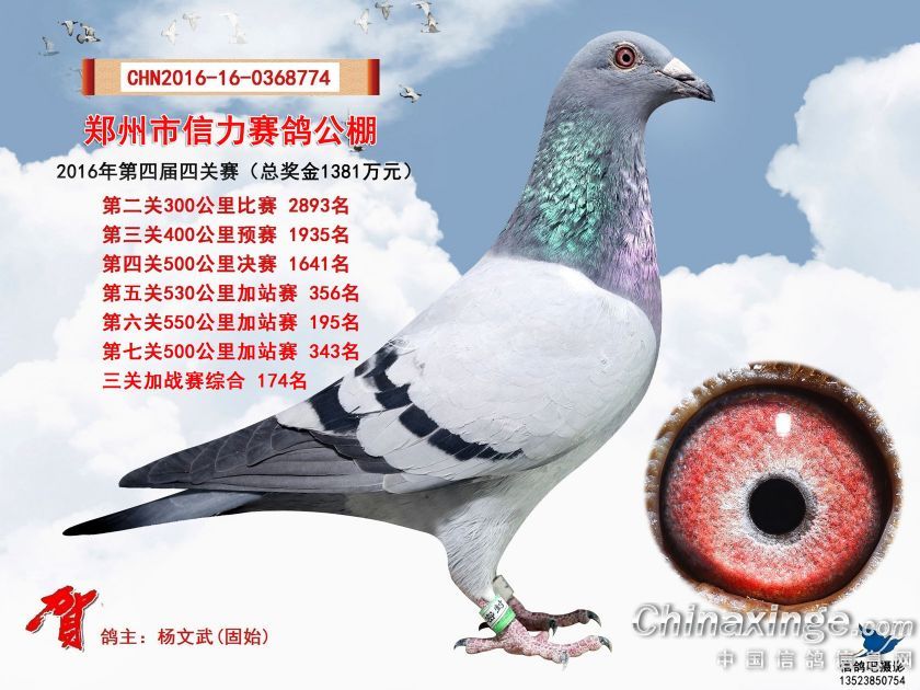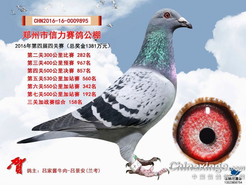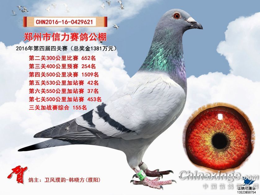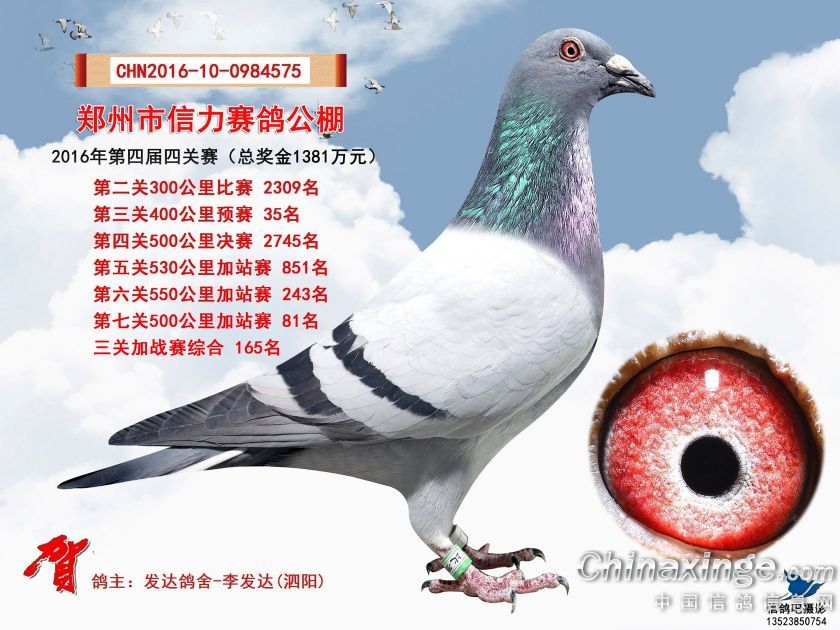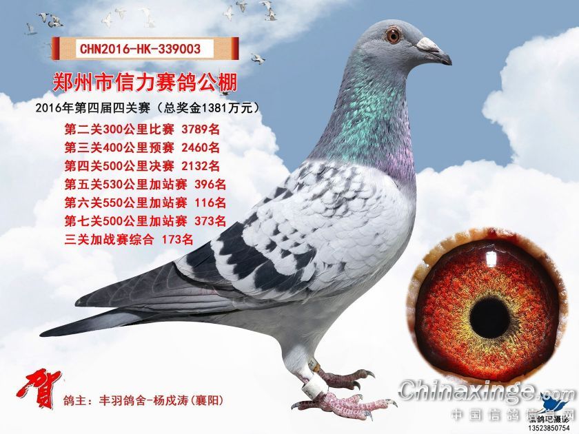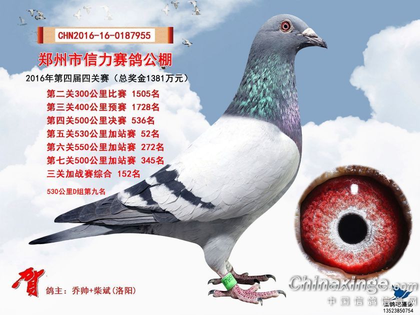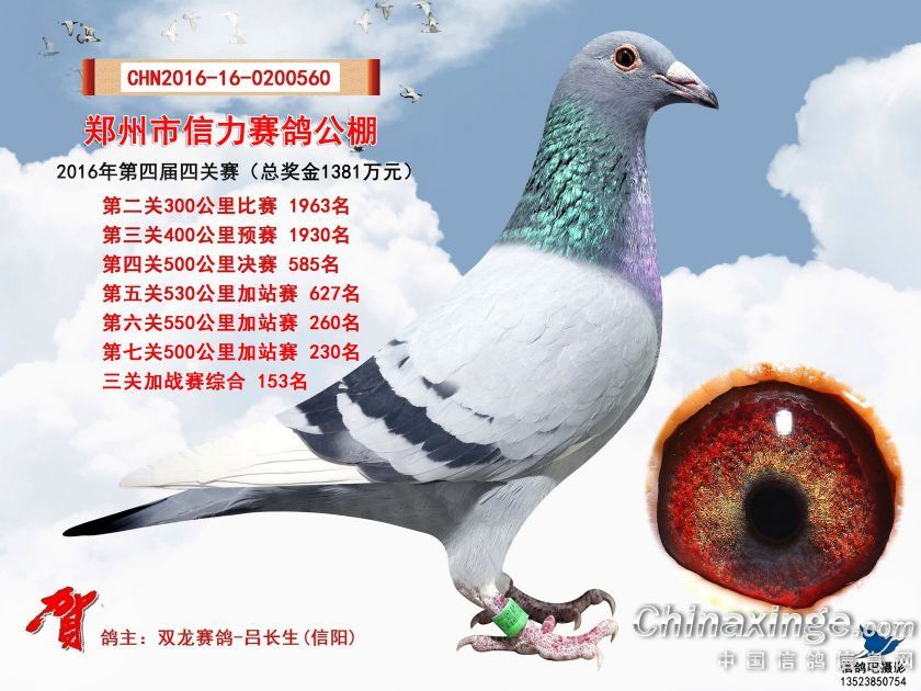 2016年郑州市信力赛鸽公棚加站赛获奖鸽照片151-175