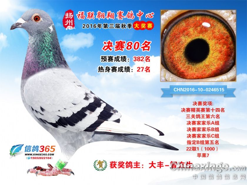 扬州福联翱翔赛鸽中心2016年三关鸽王欣赏