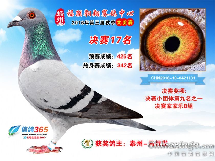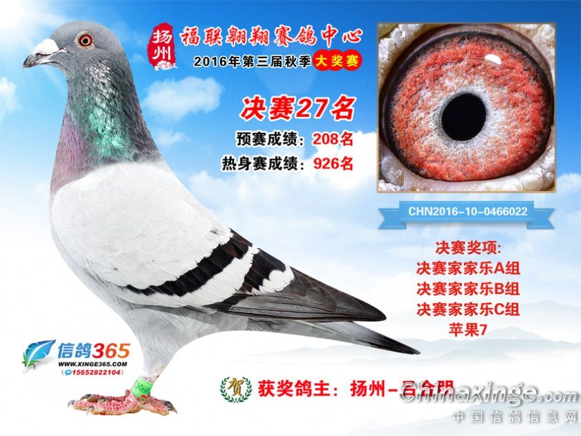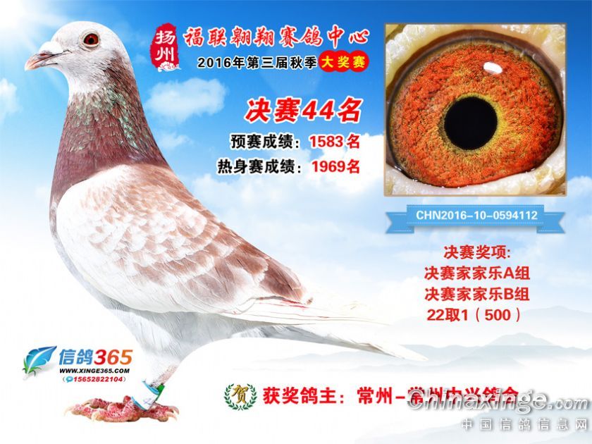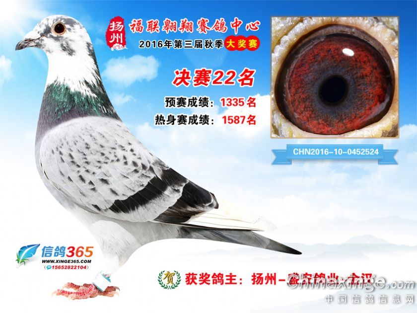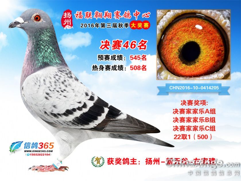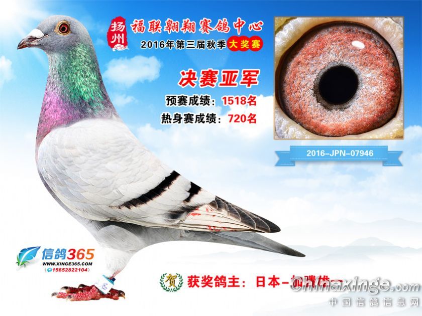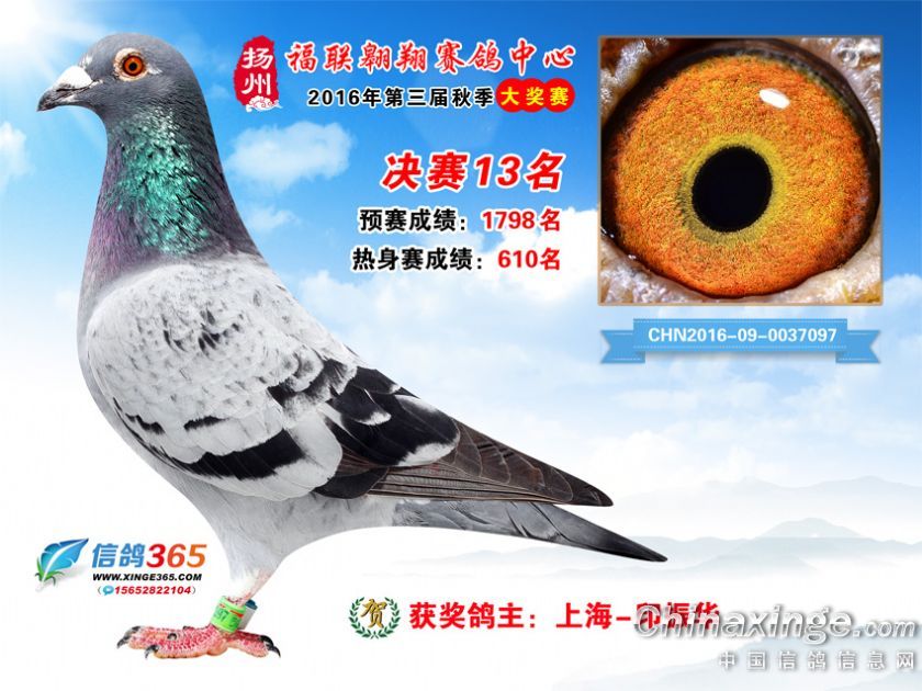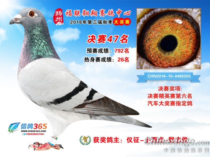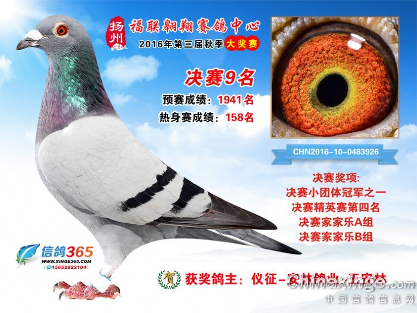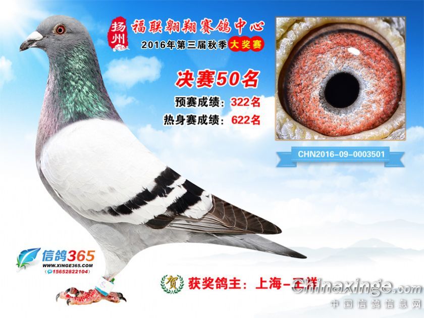 扬州福联翱翔赛鸽中心2016年获奖鸽欣赏1-50名