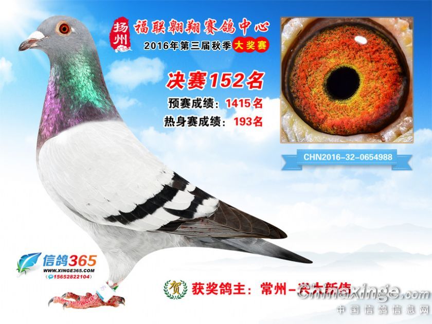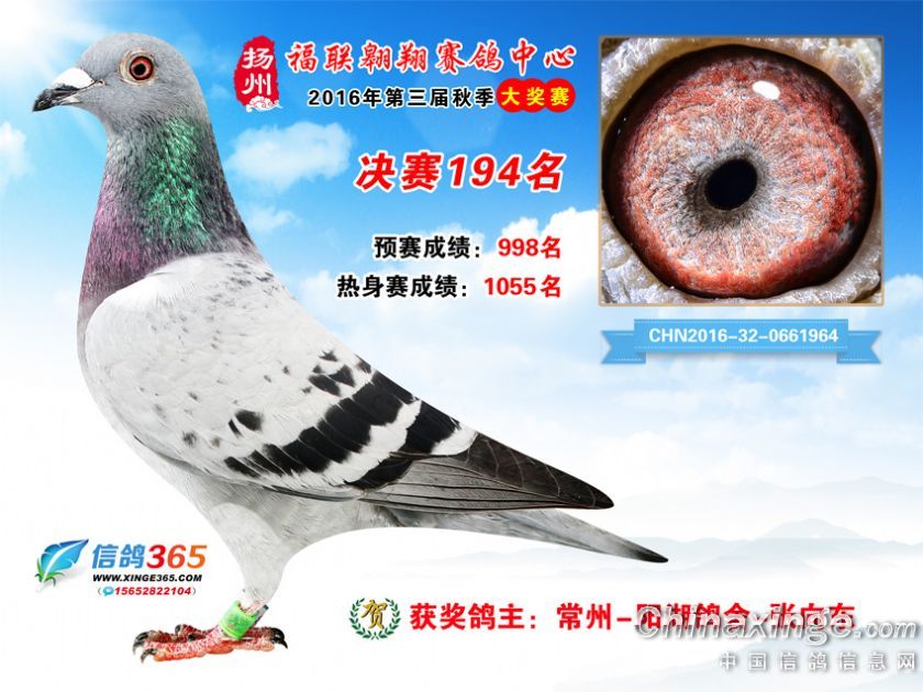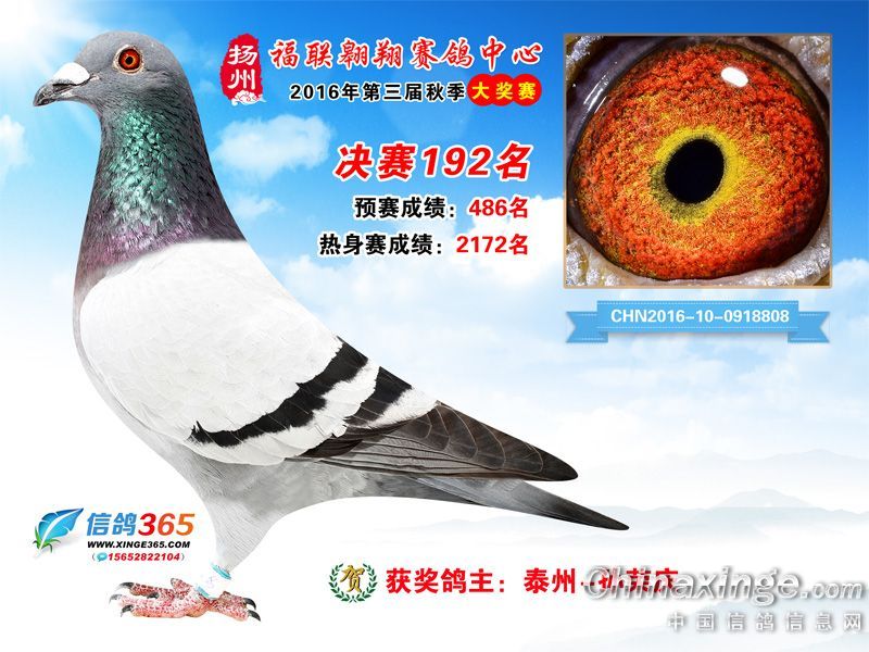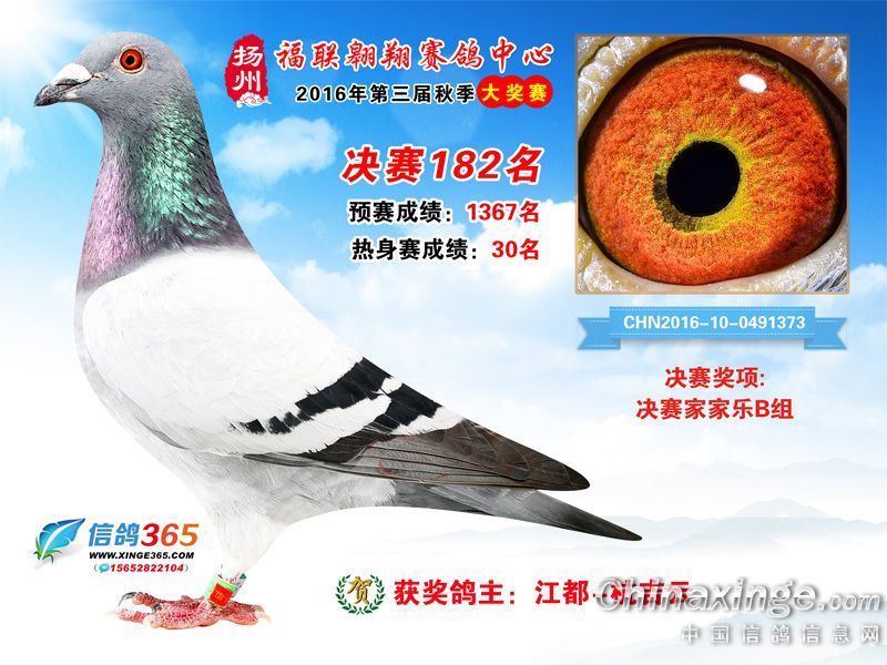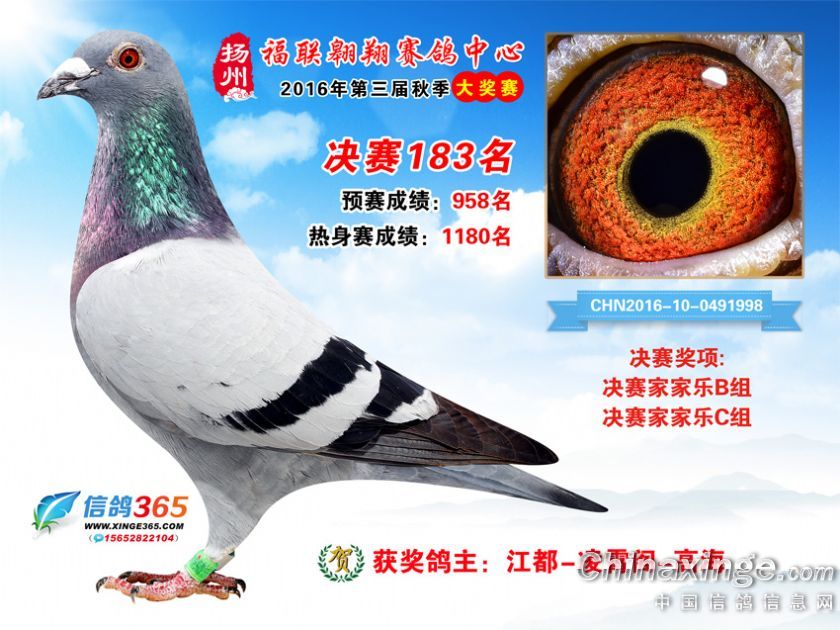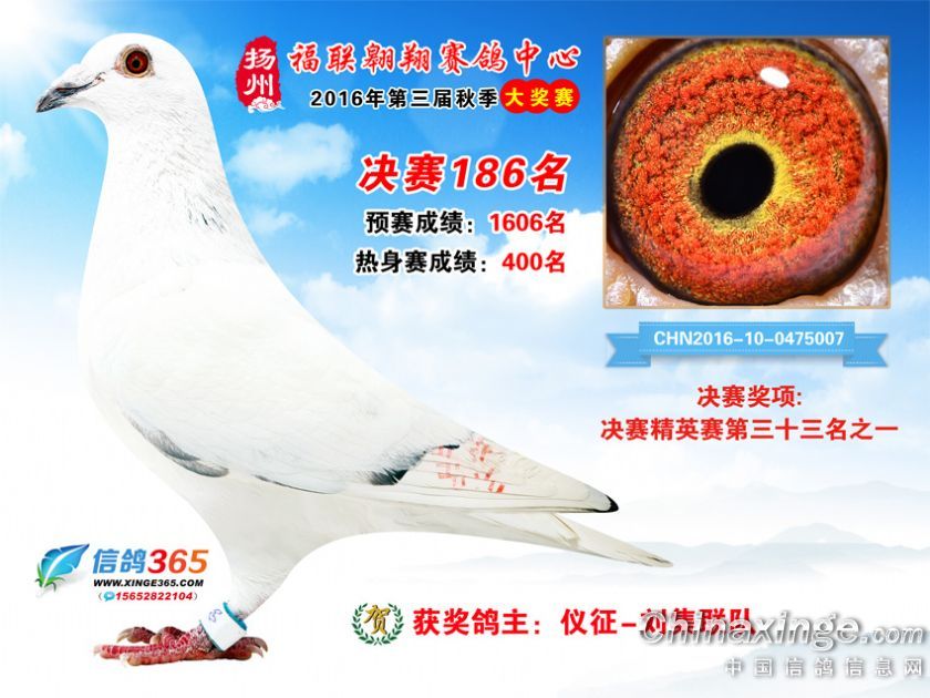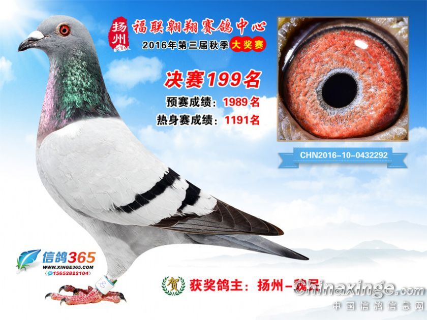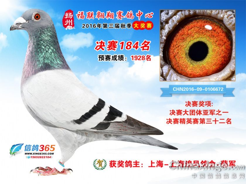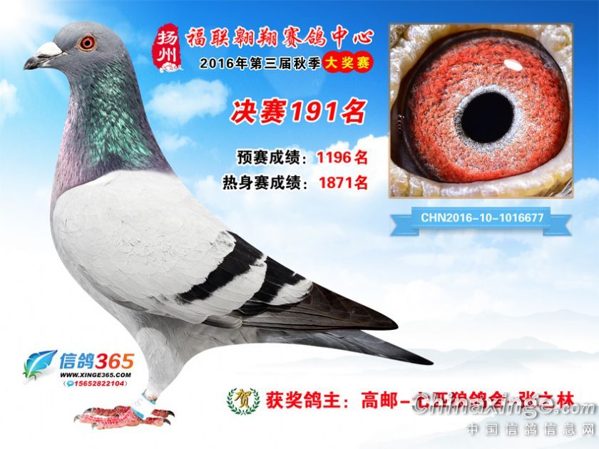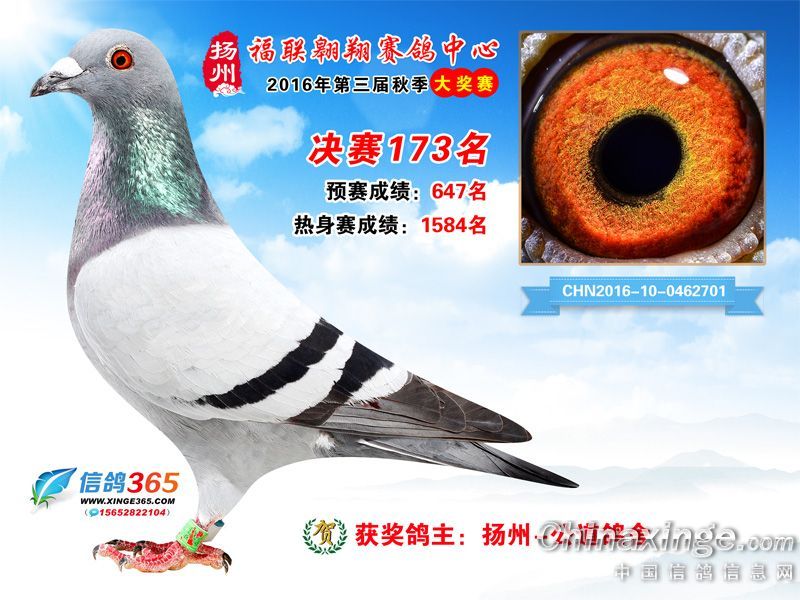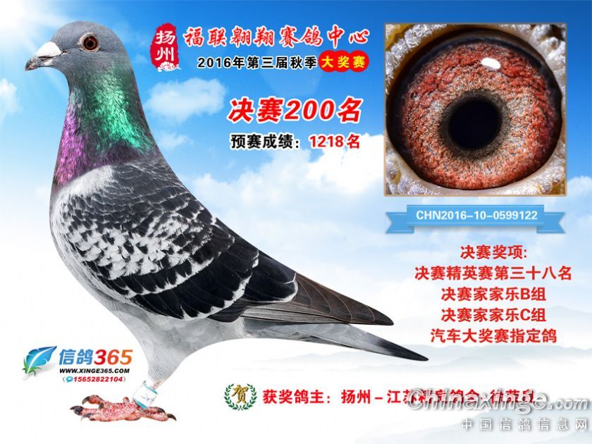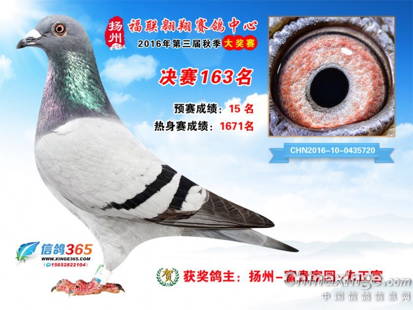 作品说明: 扬州福联翱翔赛鸽中心2016年获奖鸽欣赏151-200名