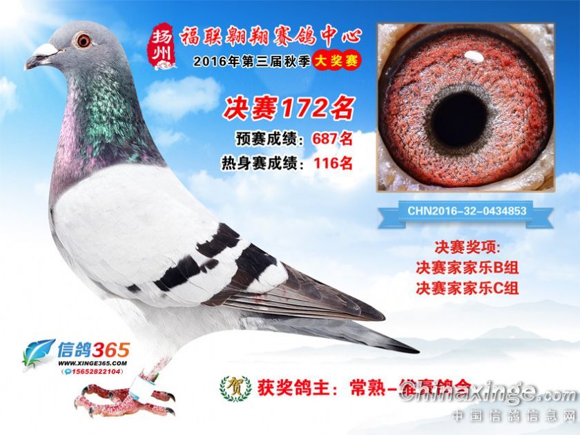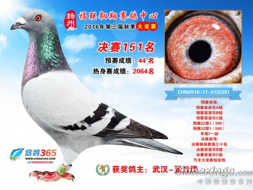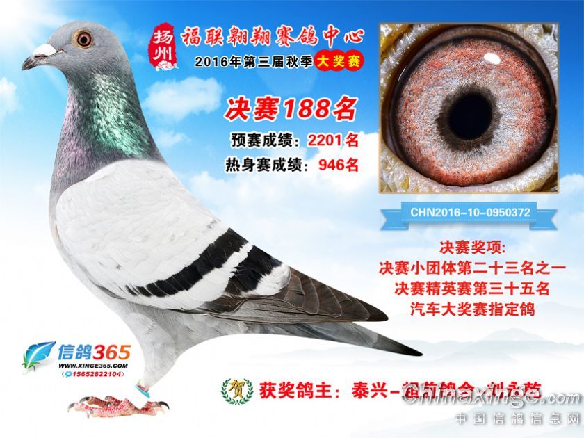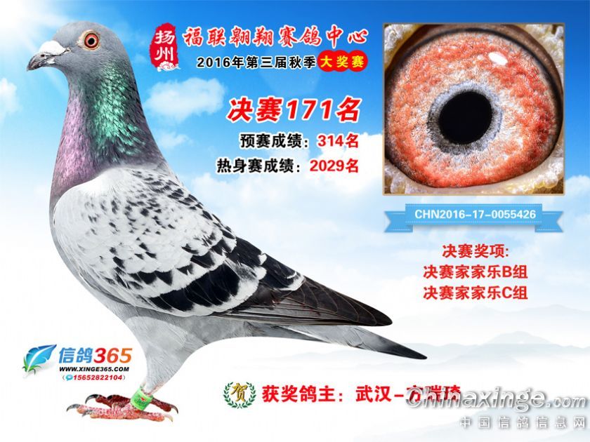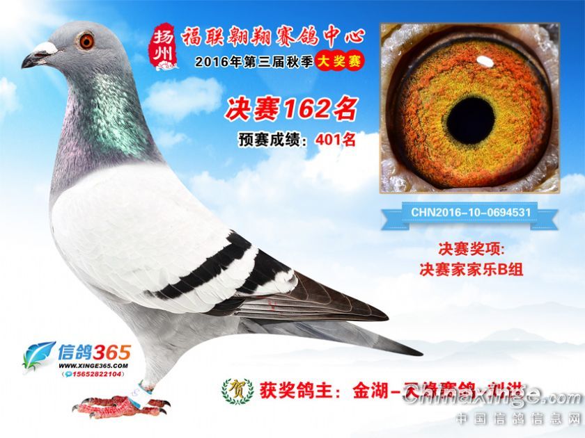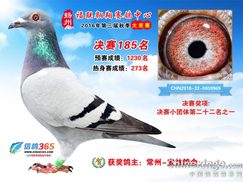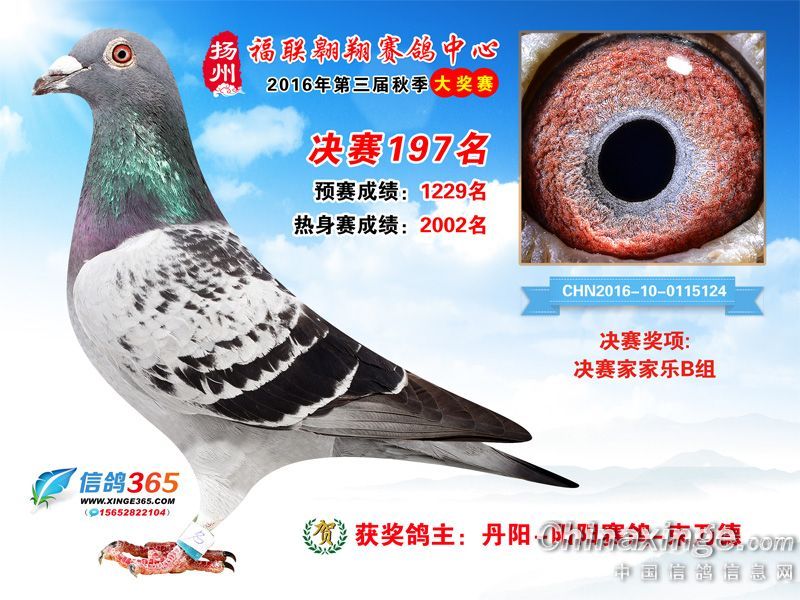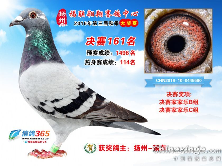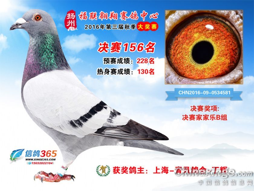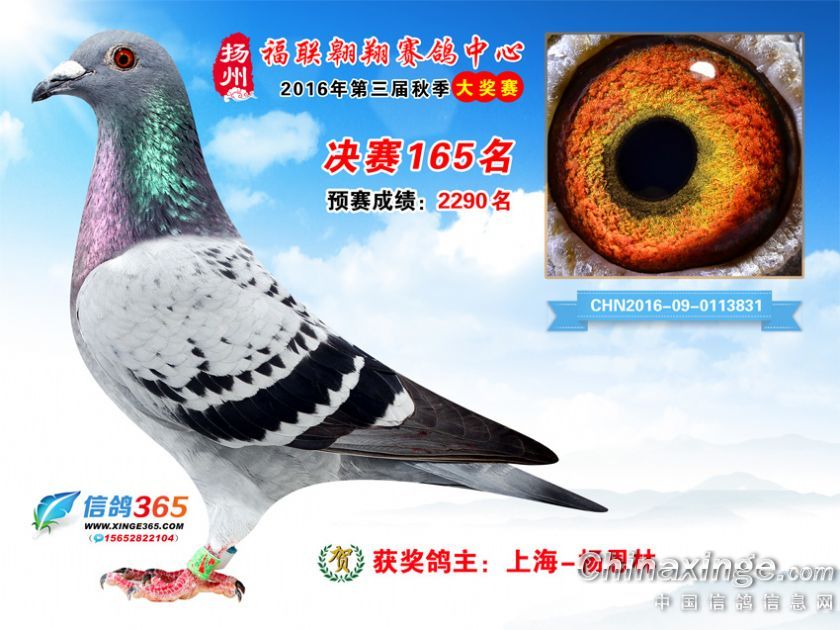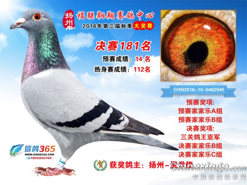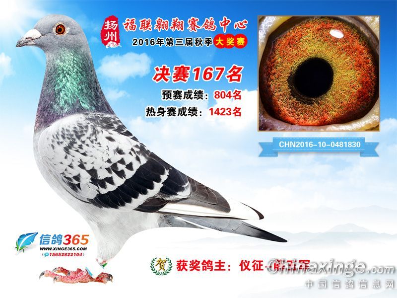 作品说明: 扬州福联翱翔赛鸽中心2016年获奖鸽欣赏151-200名