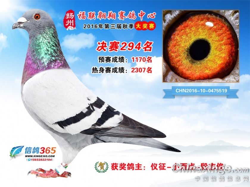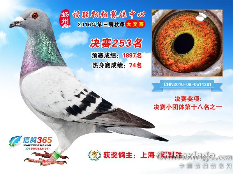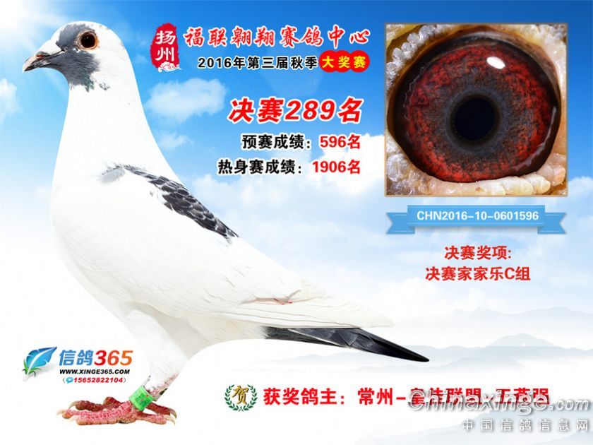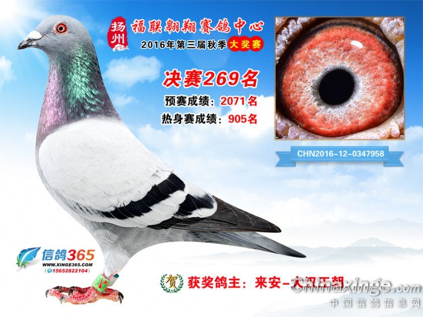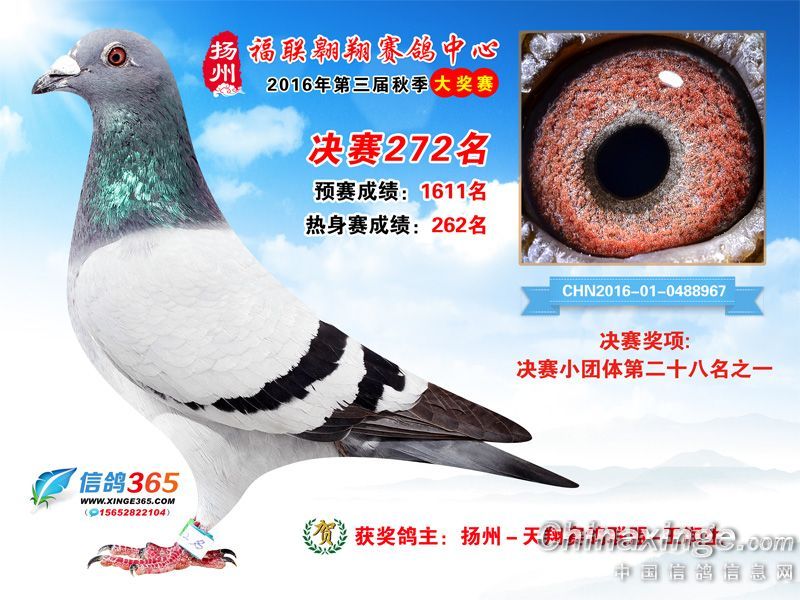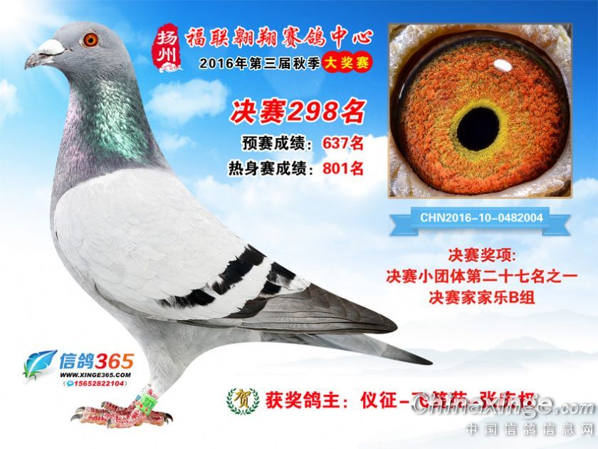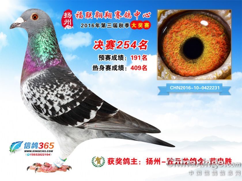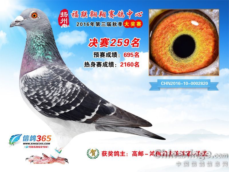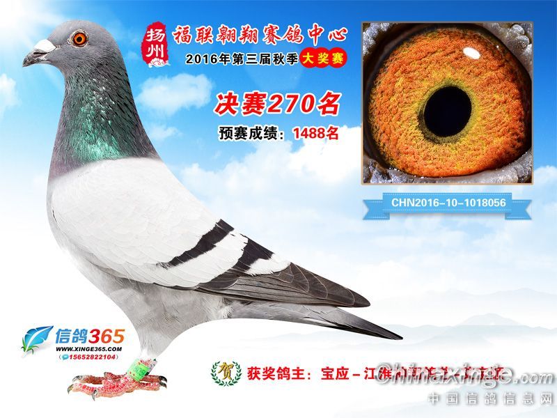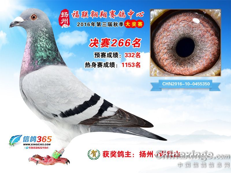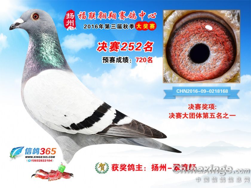 作品说明: 扬州福联翱翔赛鸽中心2016年获奖鸽欣赏251-300名