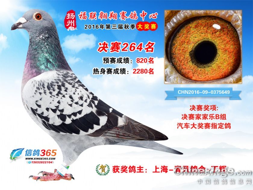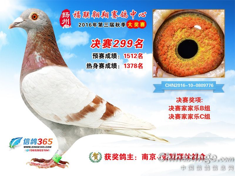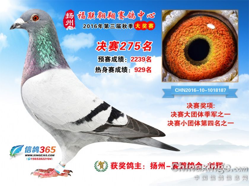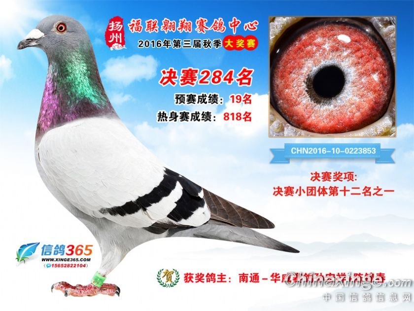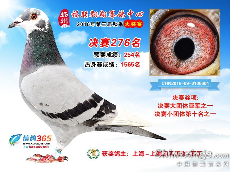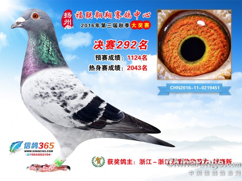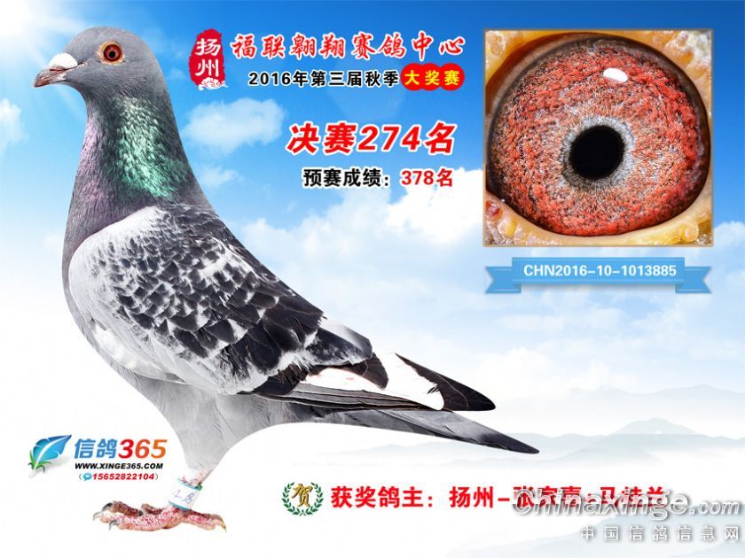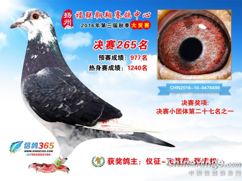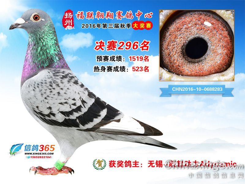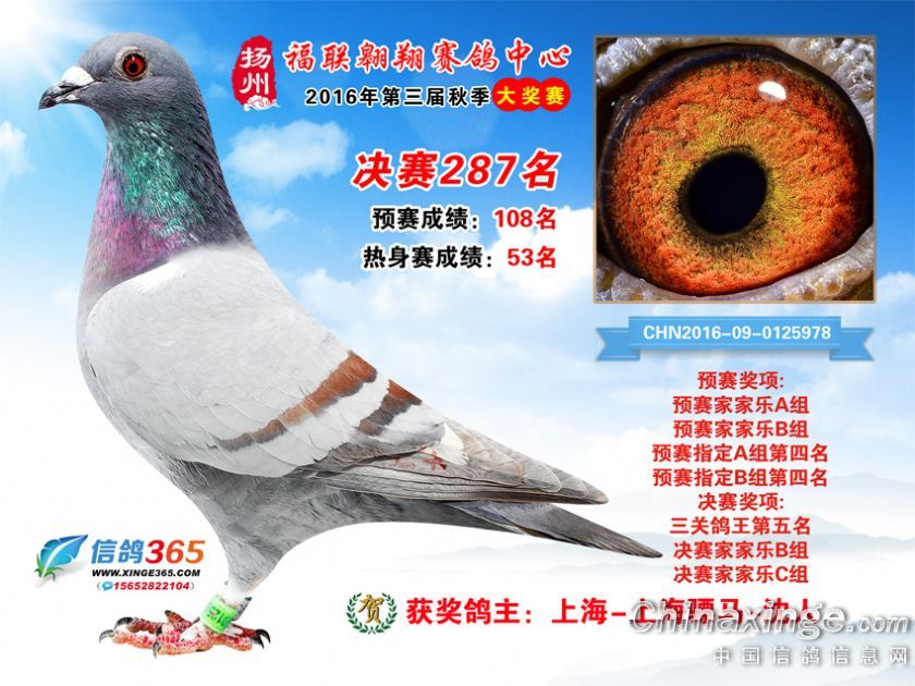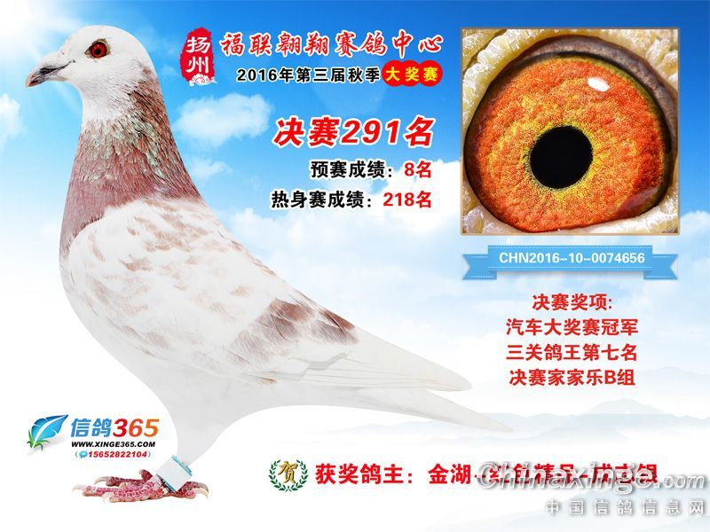 作品说明: 扬州福联翱翔赛鸽中心2016年获奖鸽欣赏251-300名