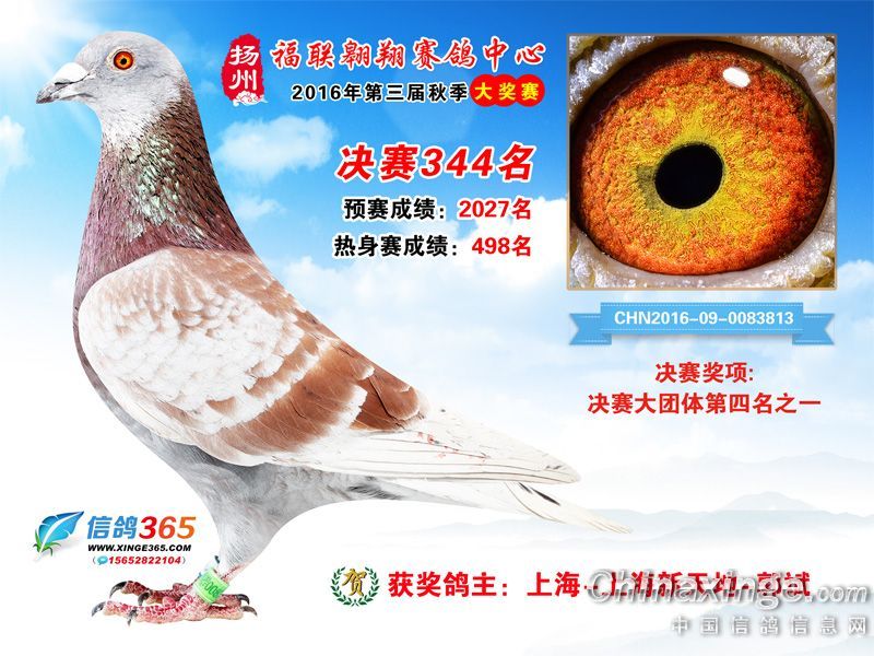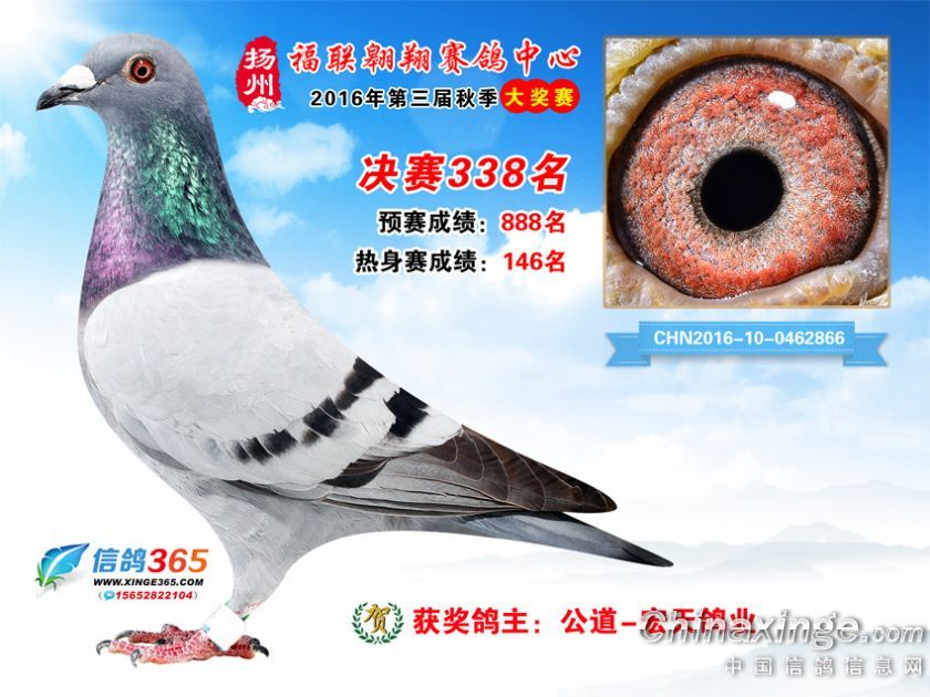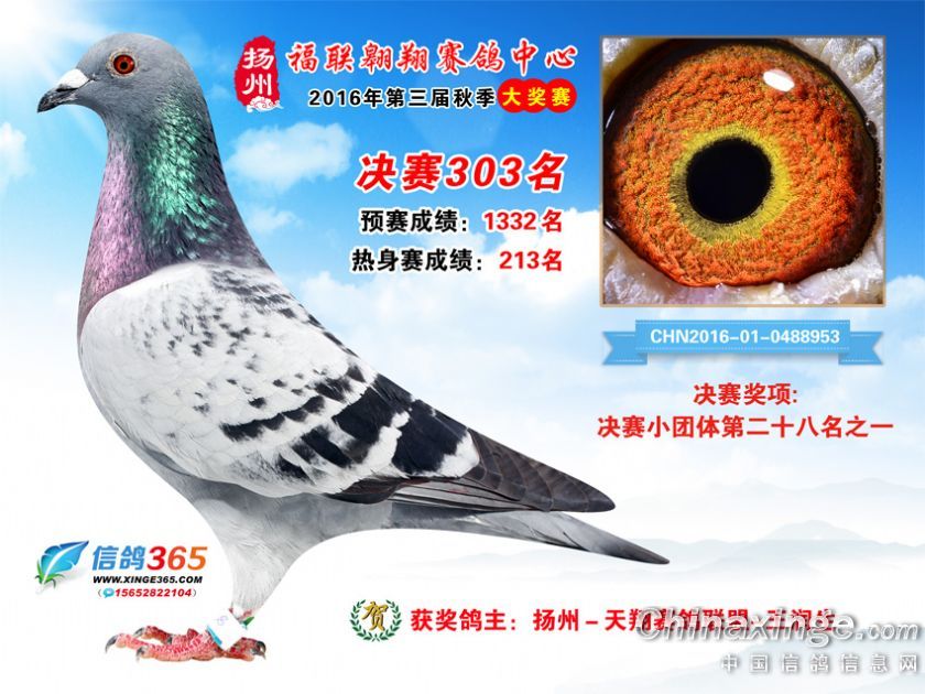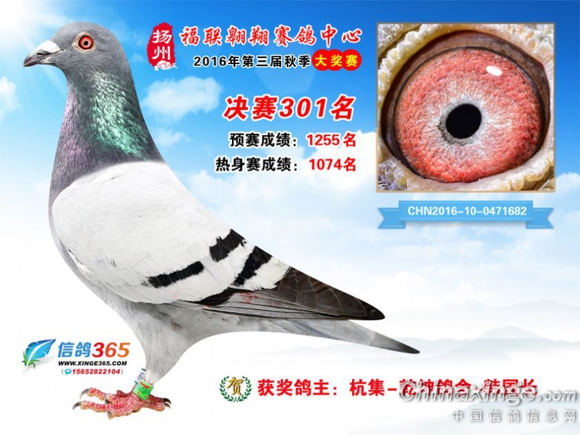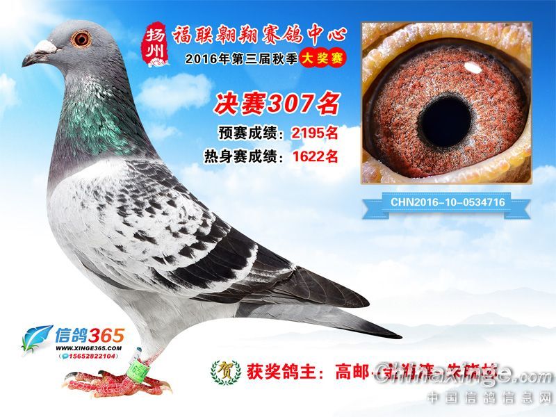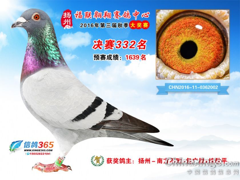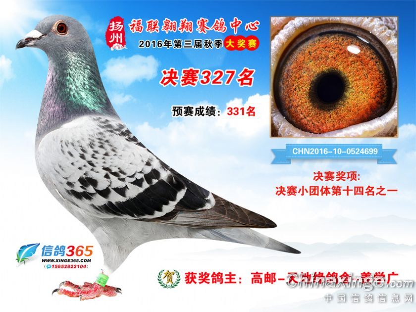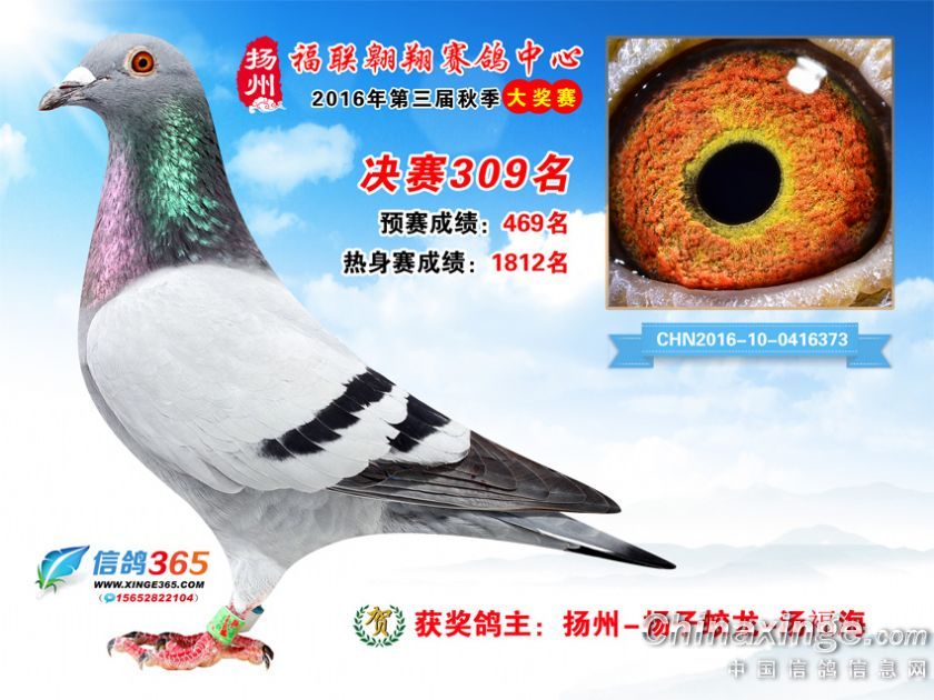 作品说明: 扬州福联翱翔赛鸽中心2016年获奖鸽欣赏301-350名