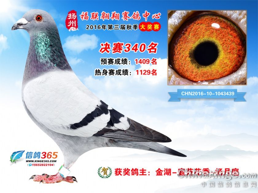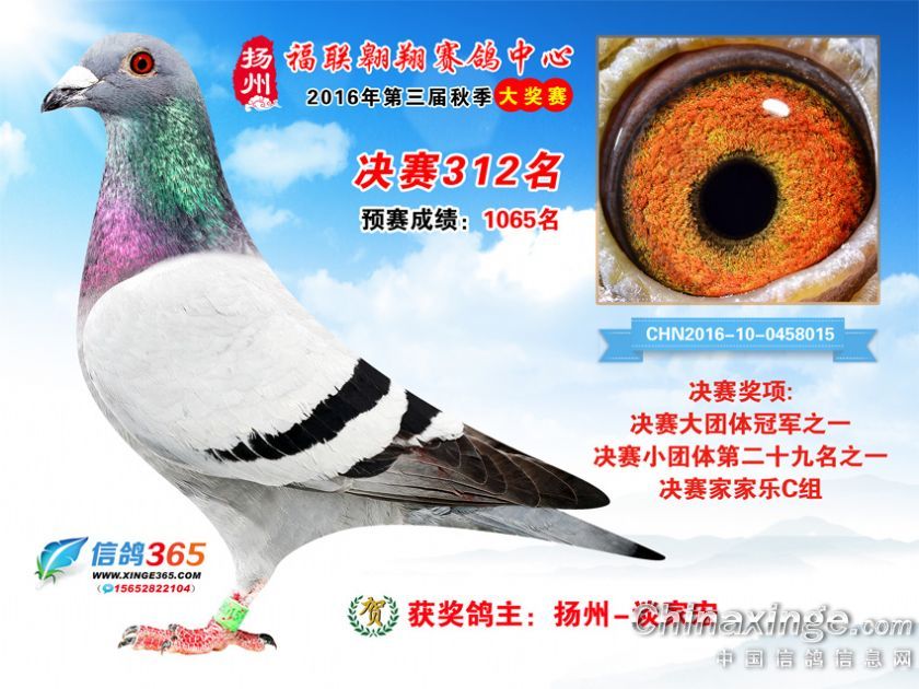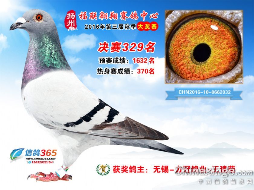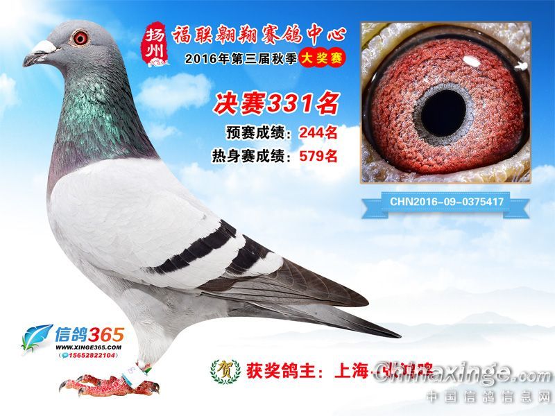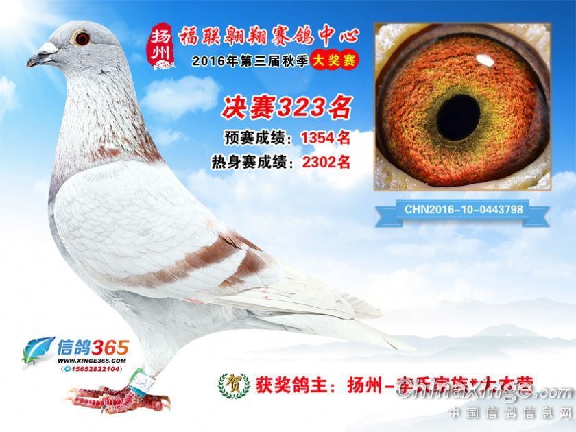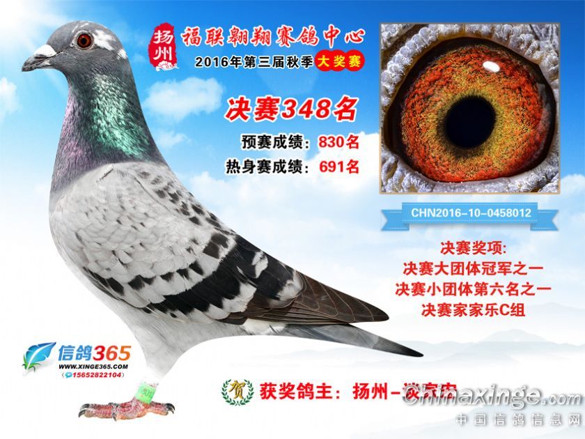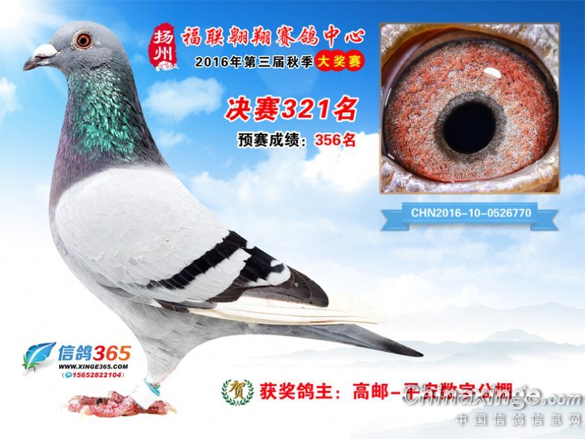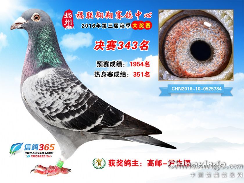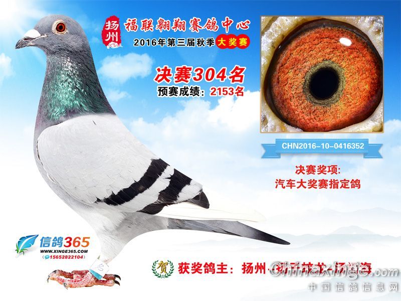 作品说明: 扬州福联翱翔赛鸽中心2016年获奖鸽欣赏301-350名
