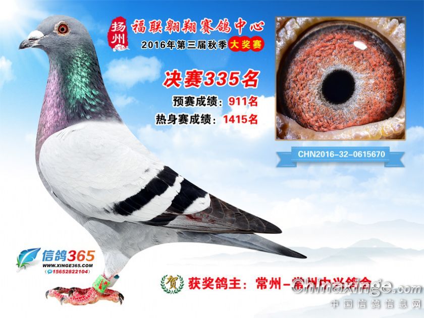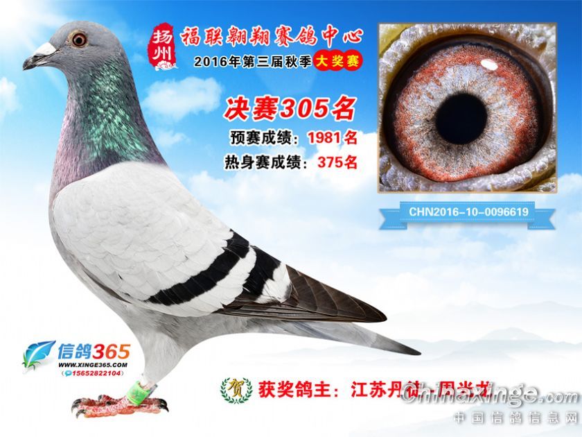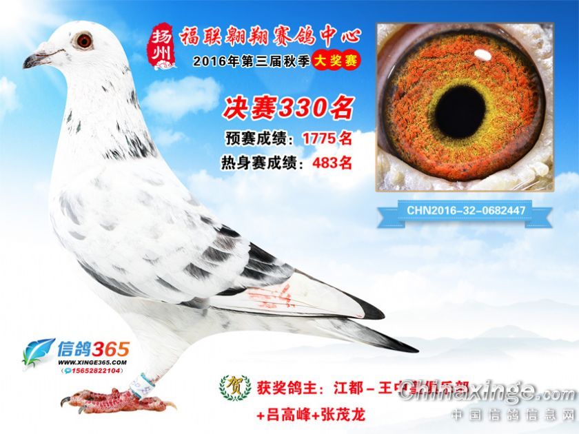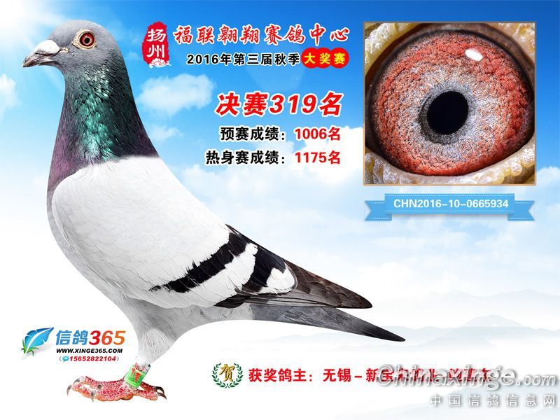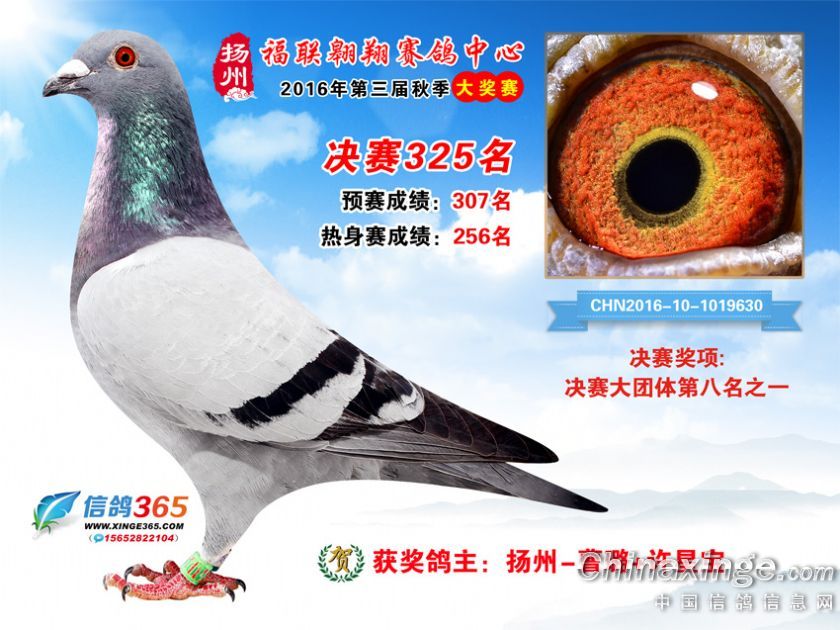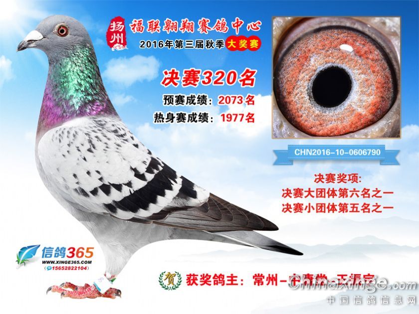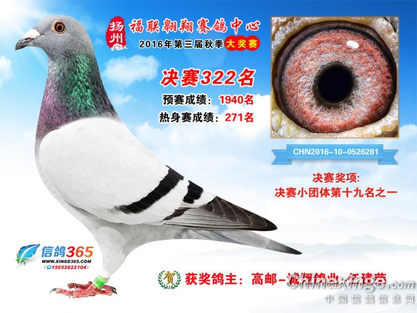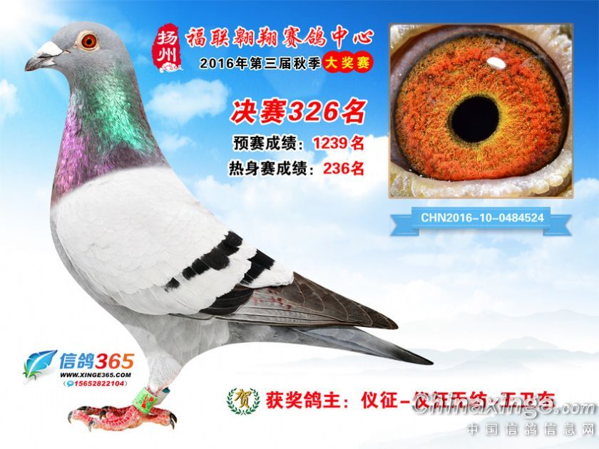 作品说明: 扬州福联翱翔赛鸽中心2016年获奖鸽欣赏301-350名