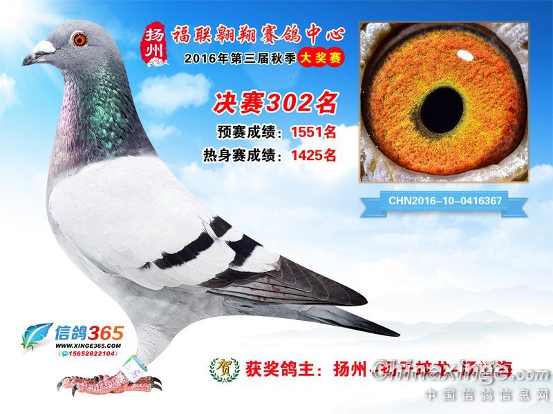 扬州福联翱翔赛鸽中心2016年获奖鸽欣赏301-350名