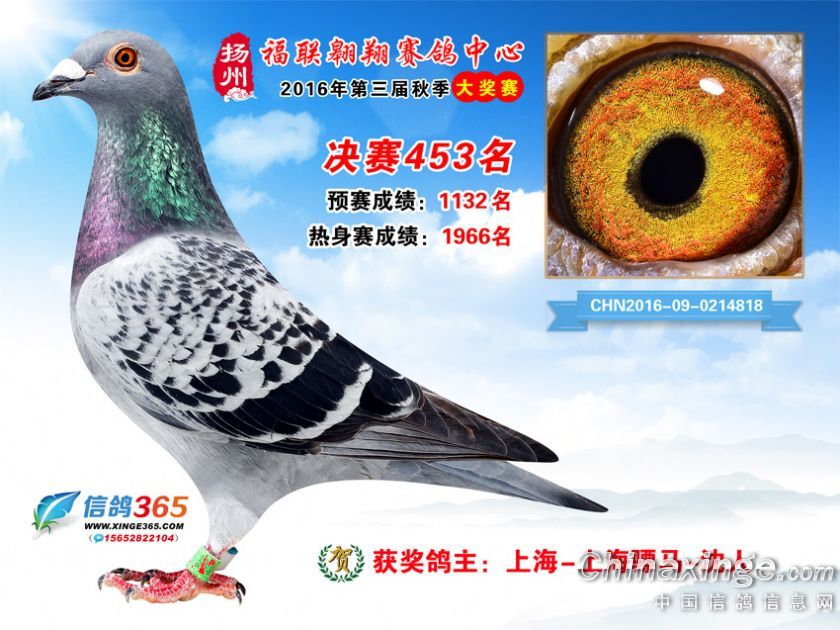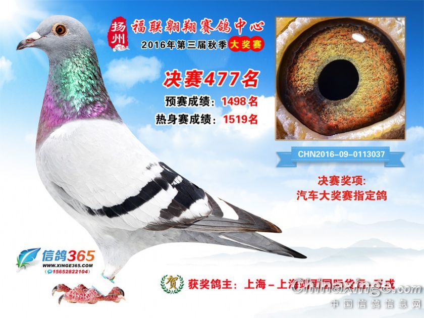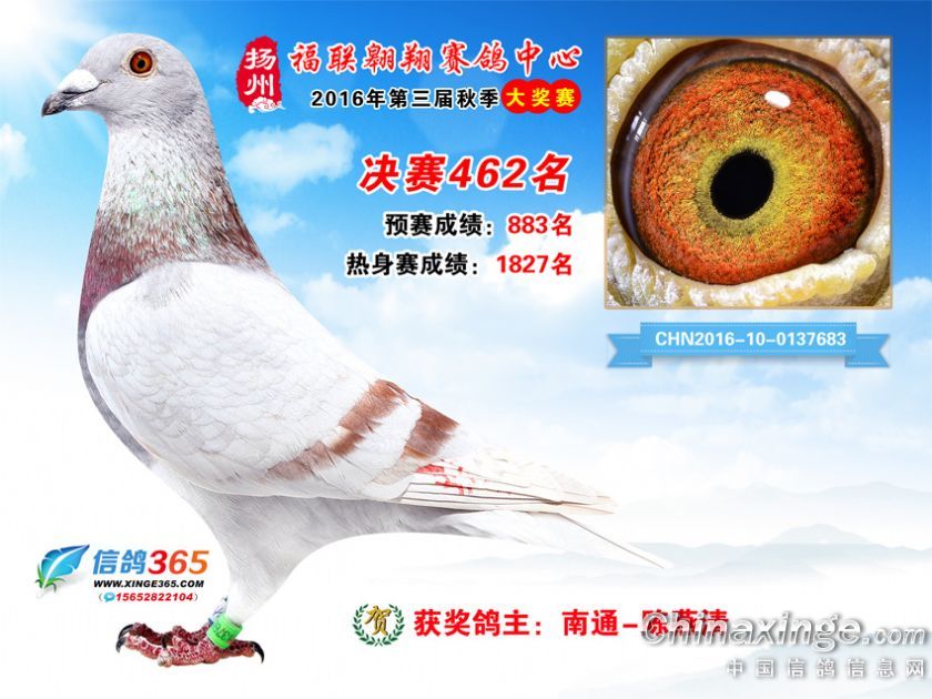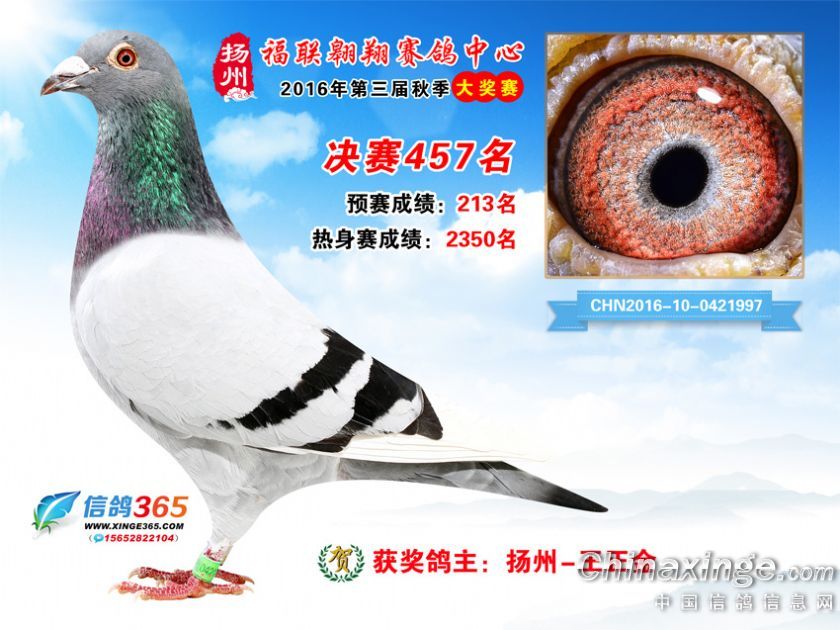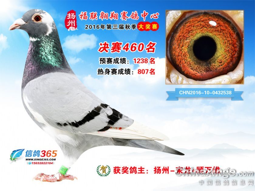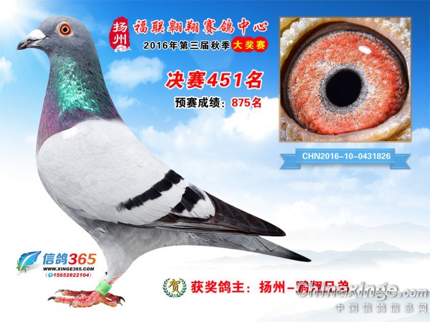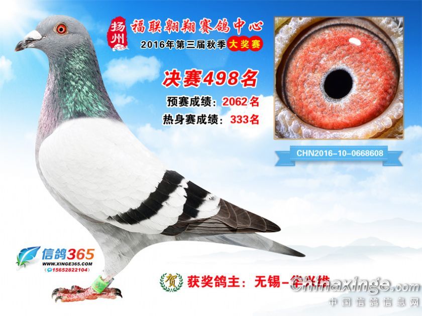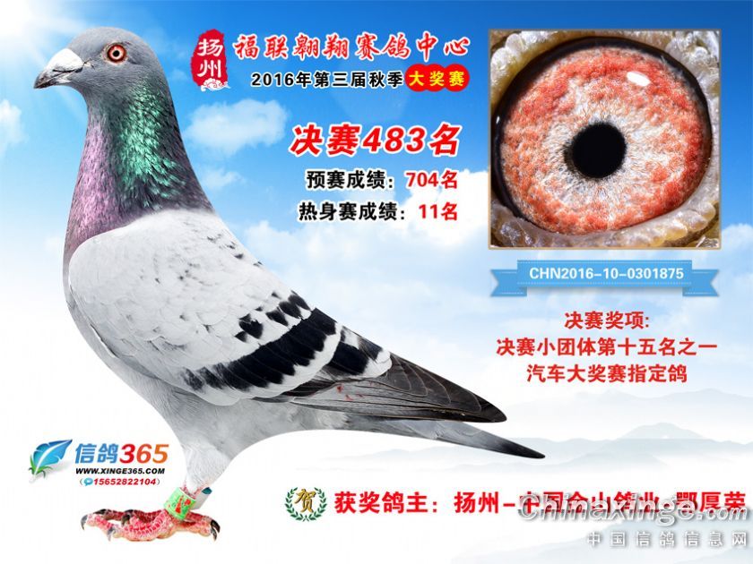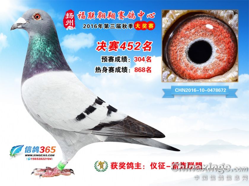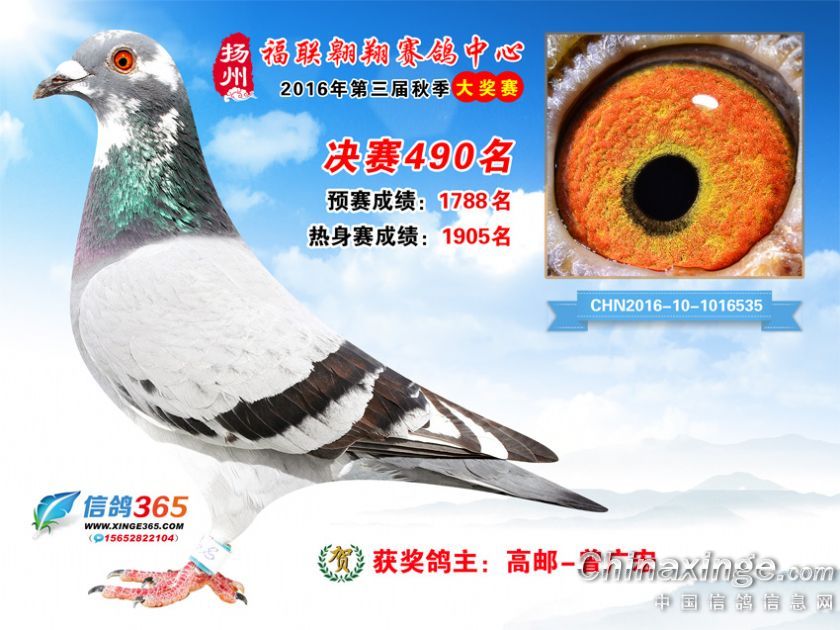作品说明: 扬州福联翱翔赛鸽中心2016年获奖鸽欣赏451-500名