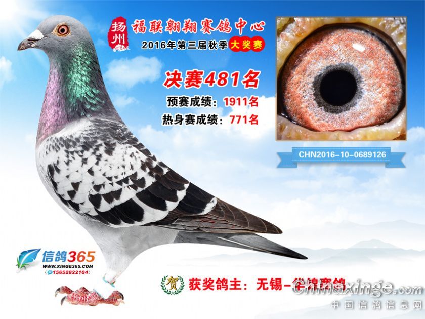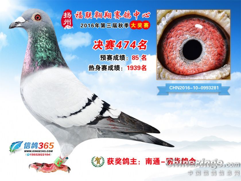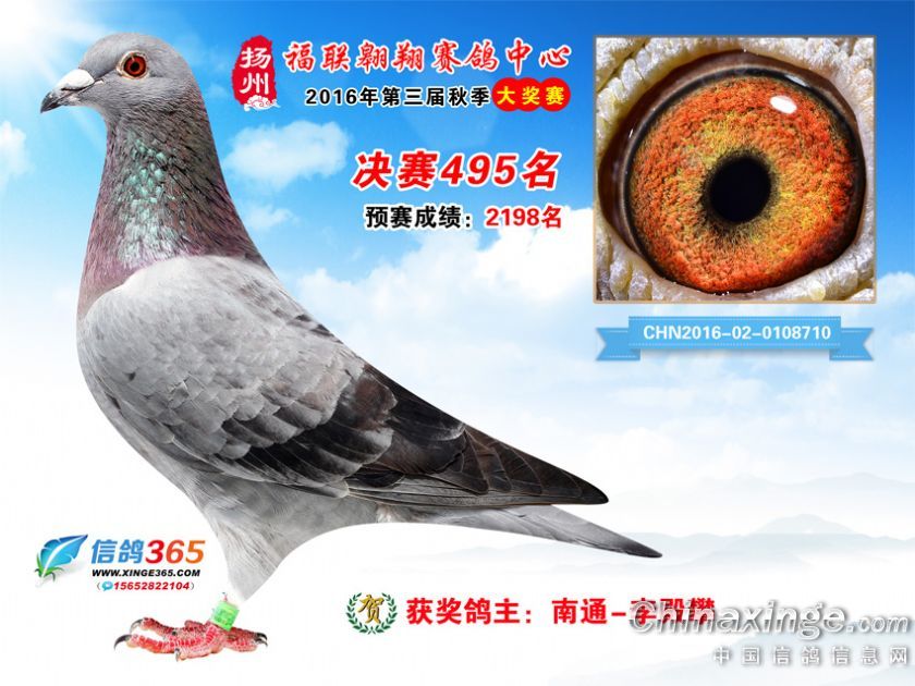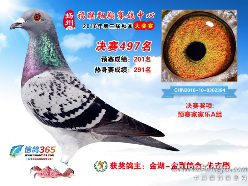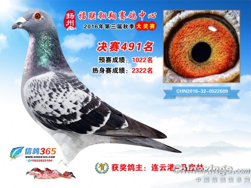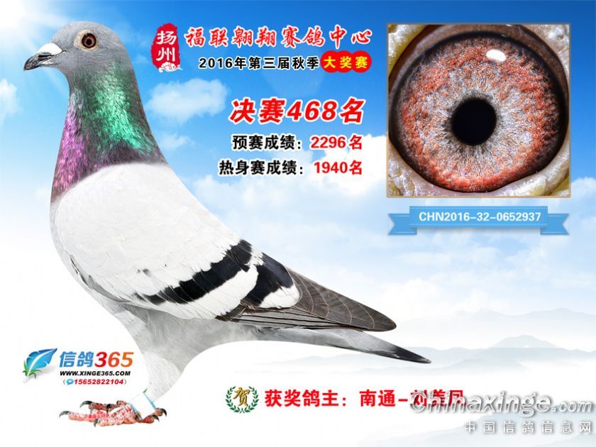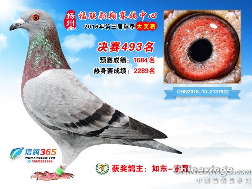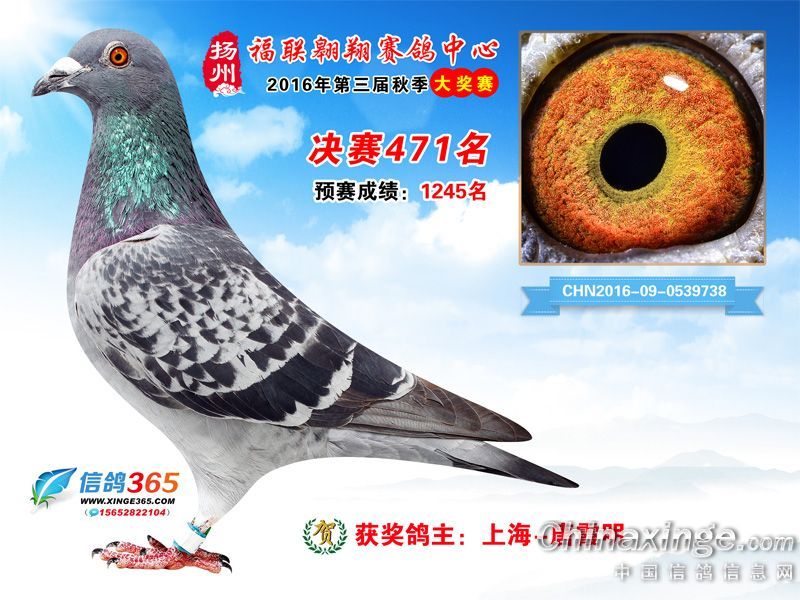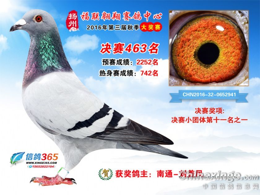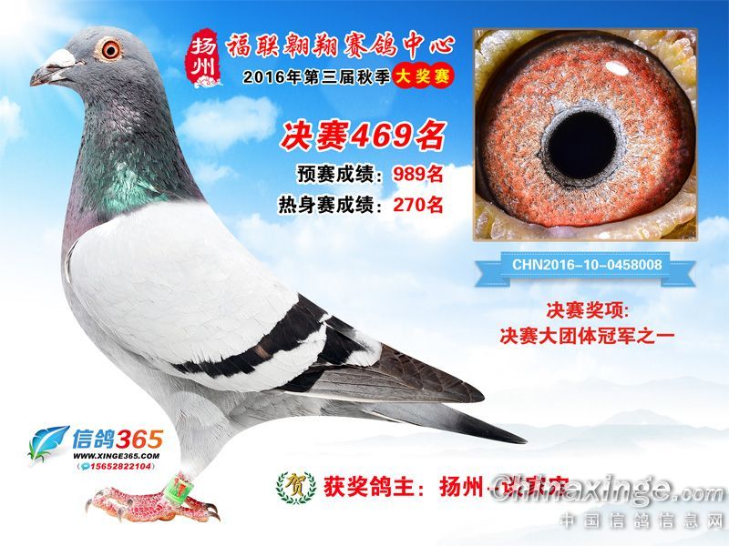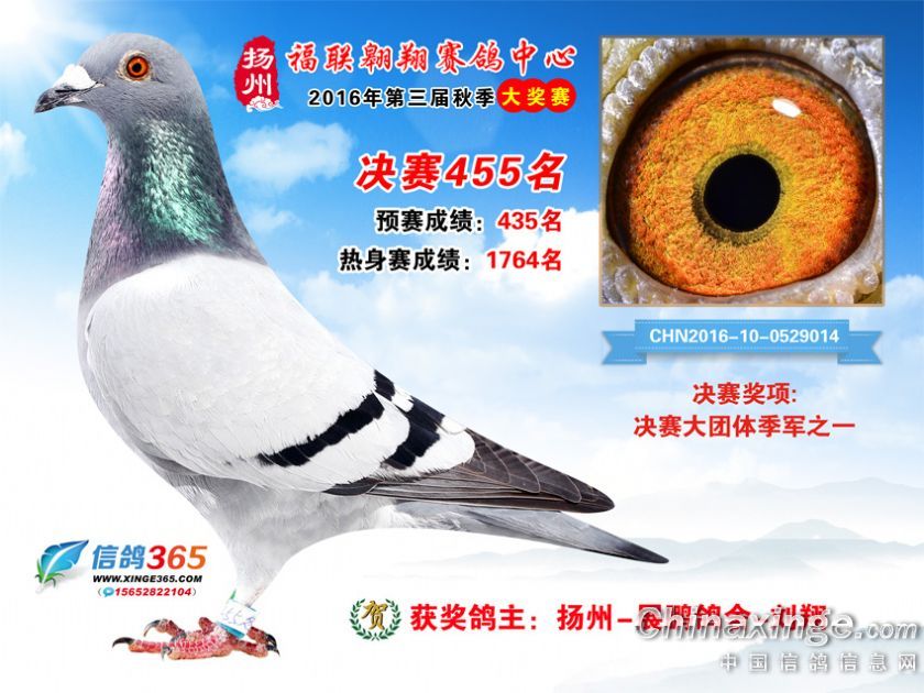 作品说明: 扬州福联翱翔赛鸽中心2016年获奖鸽欣赏451-500名