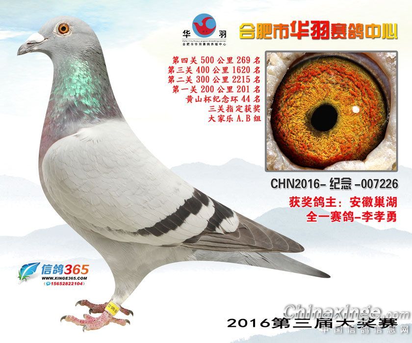 作品说明: 合肥市华羽赛鸽中心2016年获奖鸽欣赏251-275名