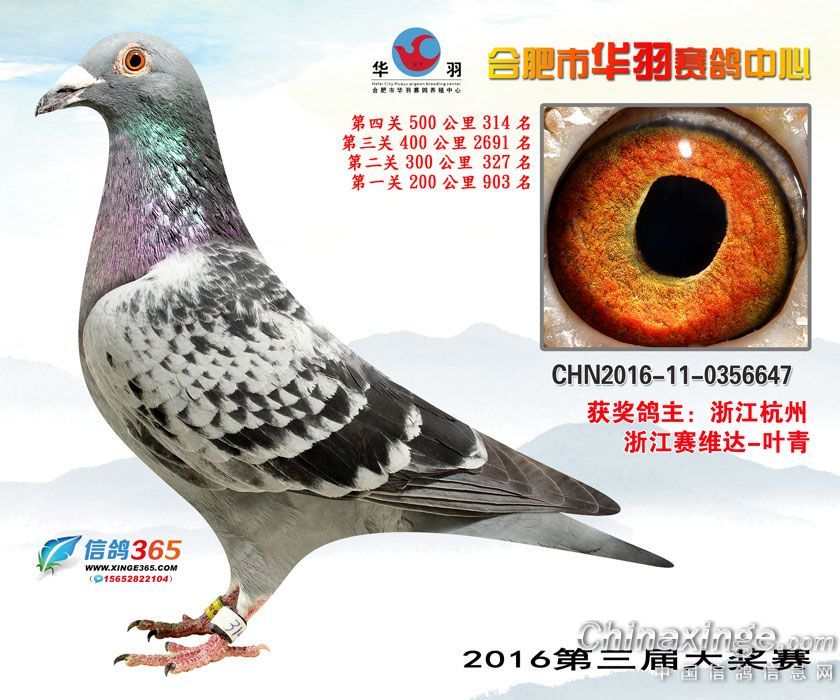 作品说明: 合肥市华羽赛鸽中心2016年获奖鸽欣赏301-325名