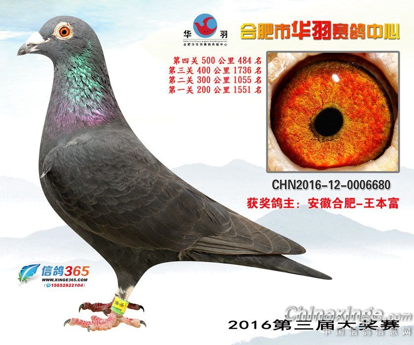 合肥市华羽赛鸽中心2016年获奖鸽欣赏476-500名