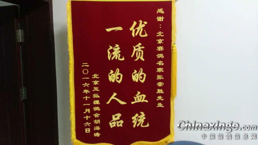 北京玉狐狸鸽舍送的锦旗