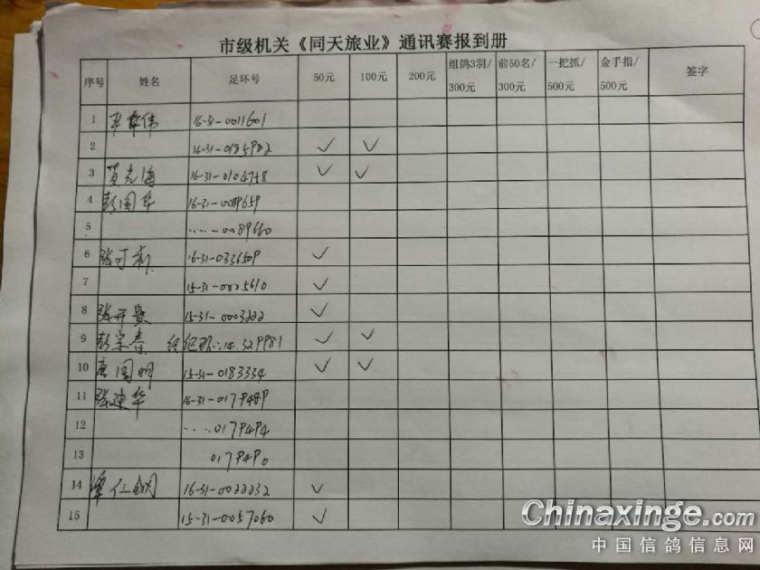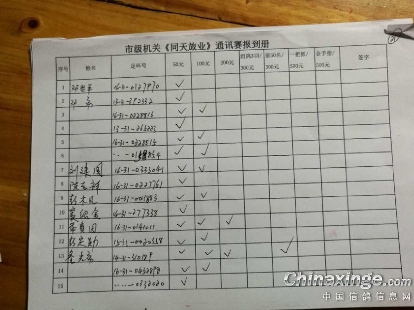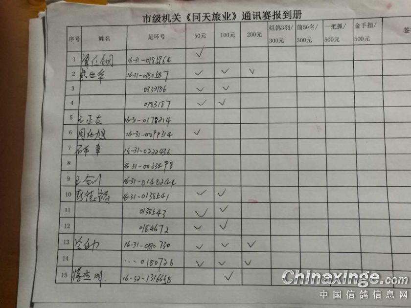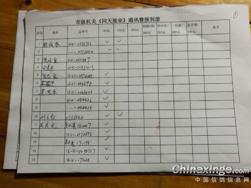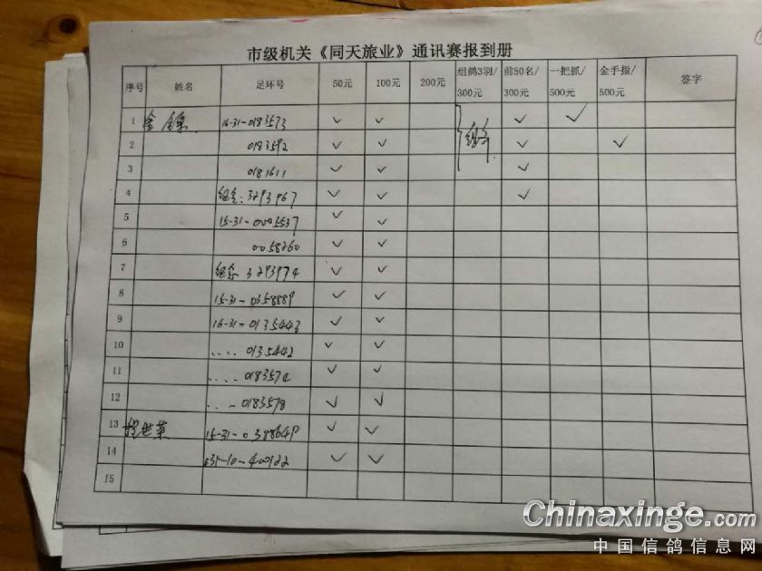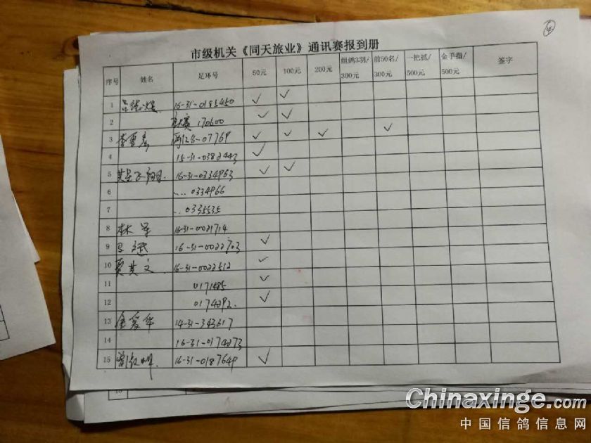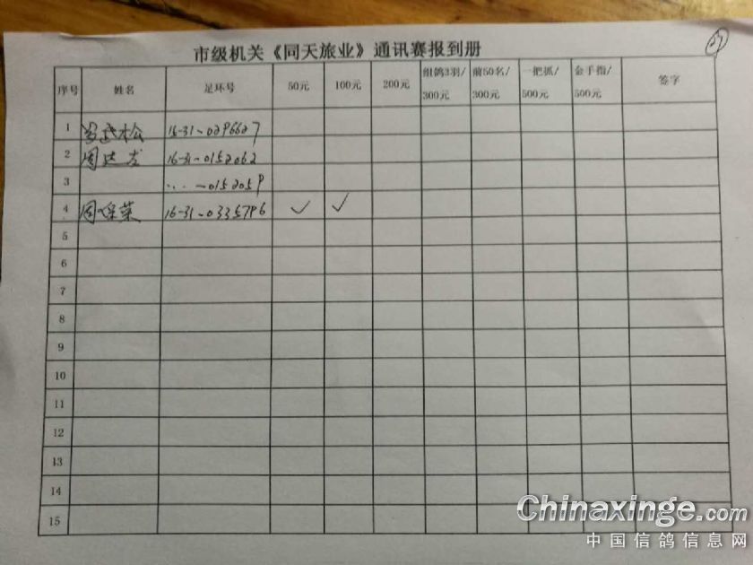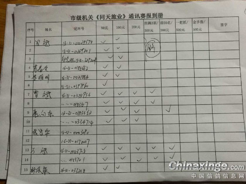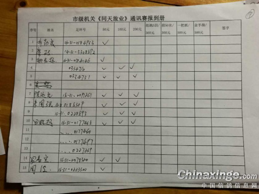 重庆机关同天旅业2017春国家赛大奖赛报到明细