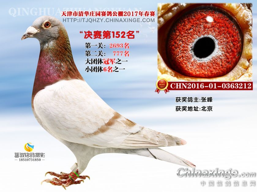 xuesijie 原创 2017/5/9 16:53:24 《天津清华庄园赛鸽公棚决赛奖鸽欣赏 》 0 93