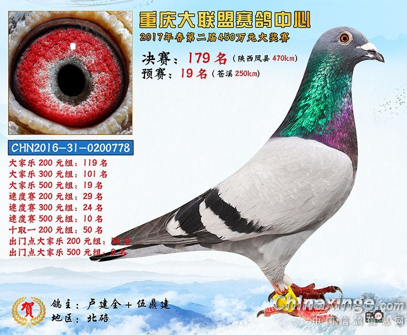 重庆大联盟赛鸽中心(春棚)2017年第二届获奖鸽151-180名鉴赏