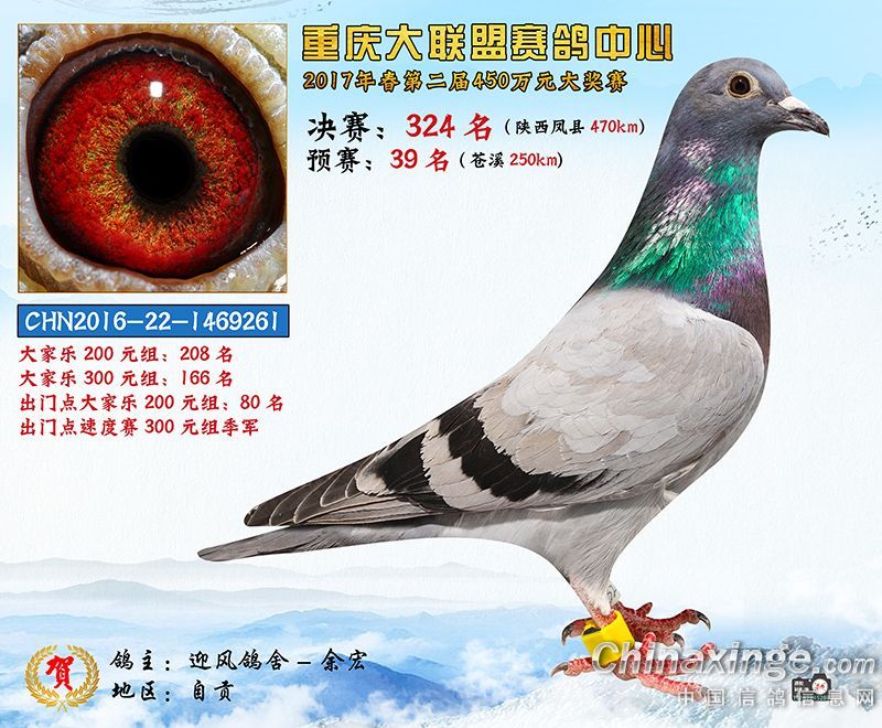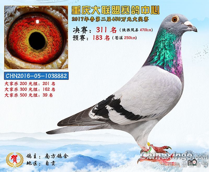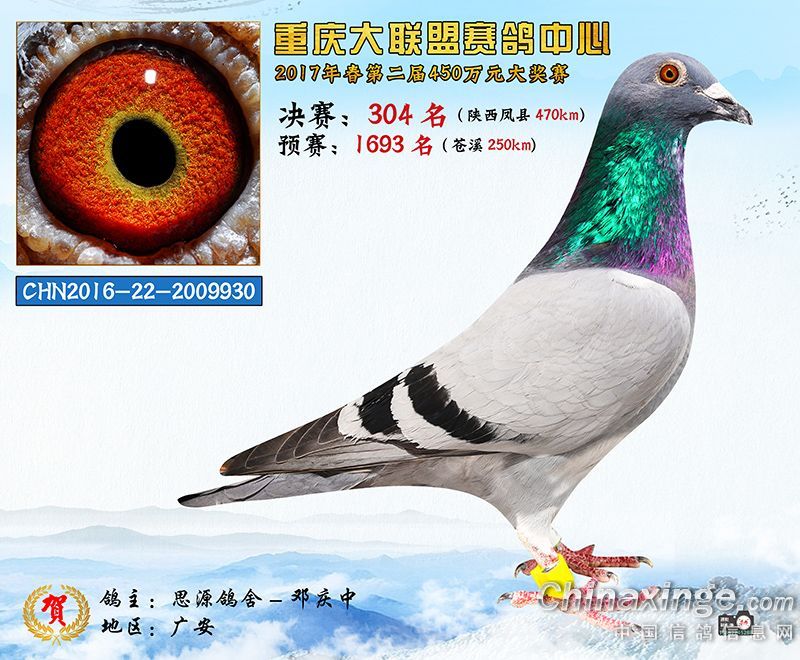 重庆大联盟赛鸽中心(春棚)2017年第二届获奖鸽301-330名鉴赏