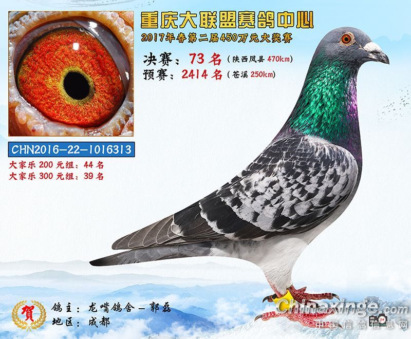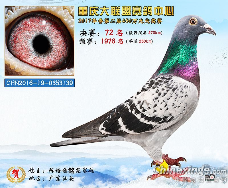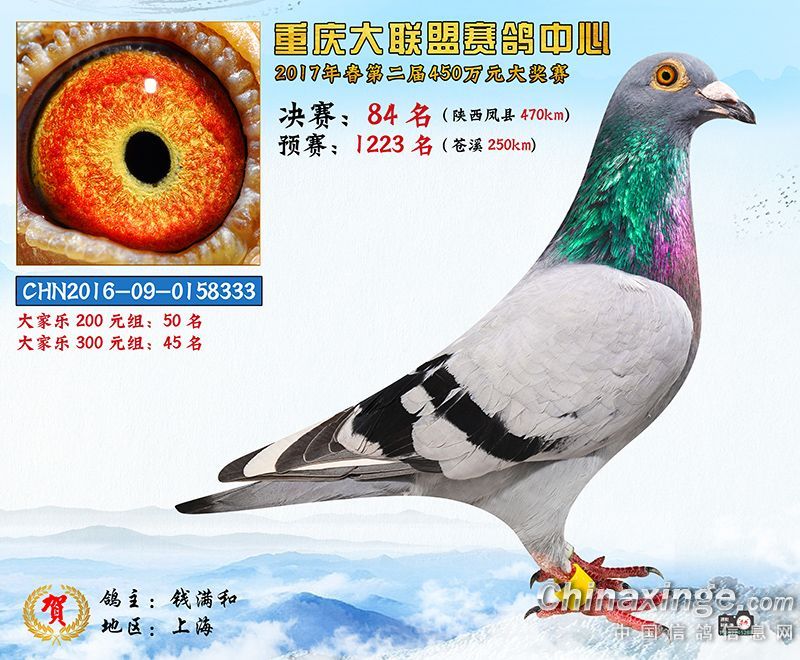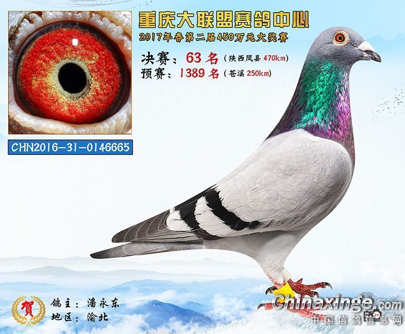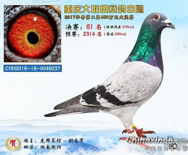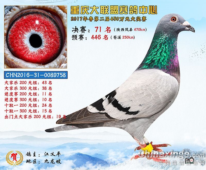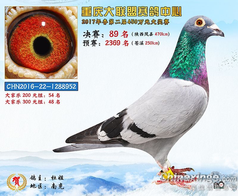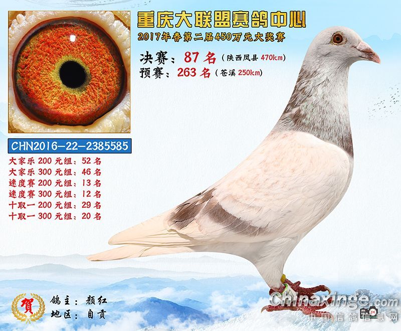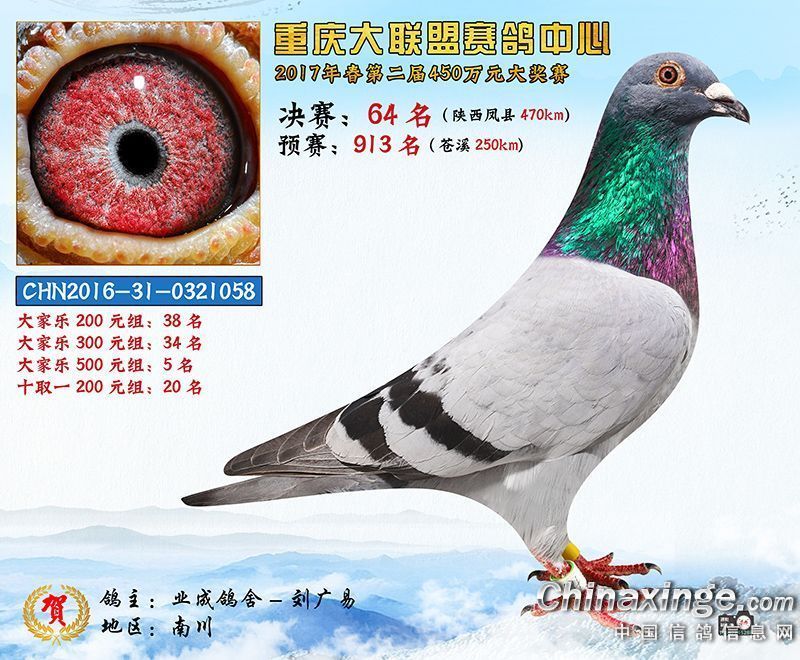 作品说明: 重庆大联盟赛鸽中心(春棚)2017年第二届获奖鸽61-90名鉴赏