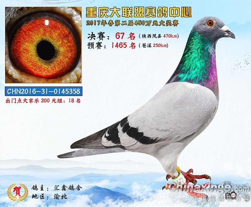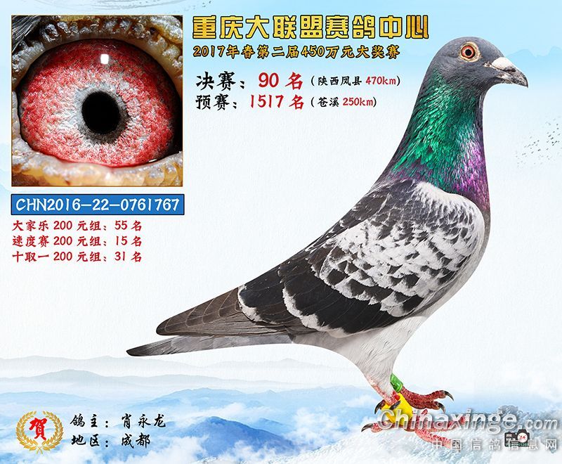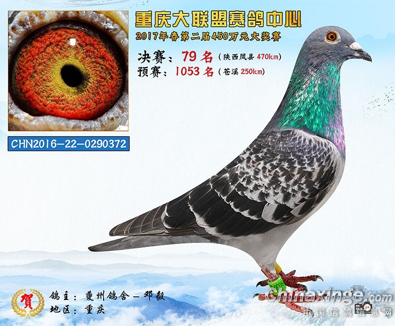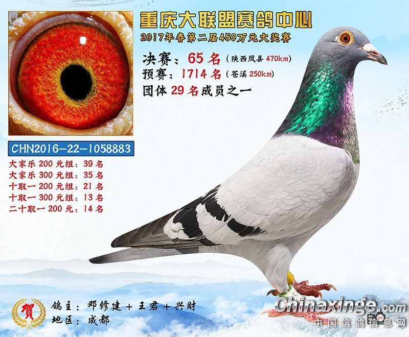重庆大联盟赛鸽中心(春棚)2017年第二届获奖鸽61-90名鉴赏
