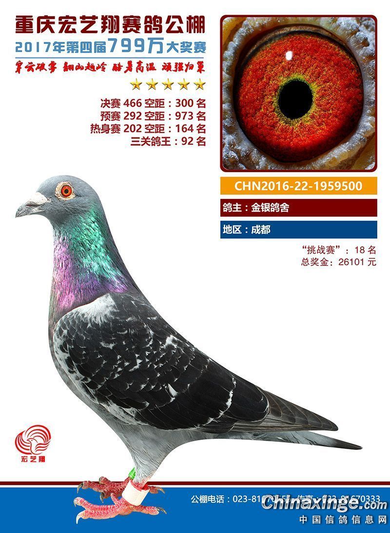 宏艺翔赛鸽春季获奖鸽271名-300名