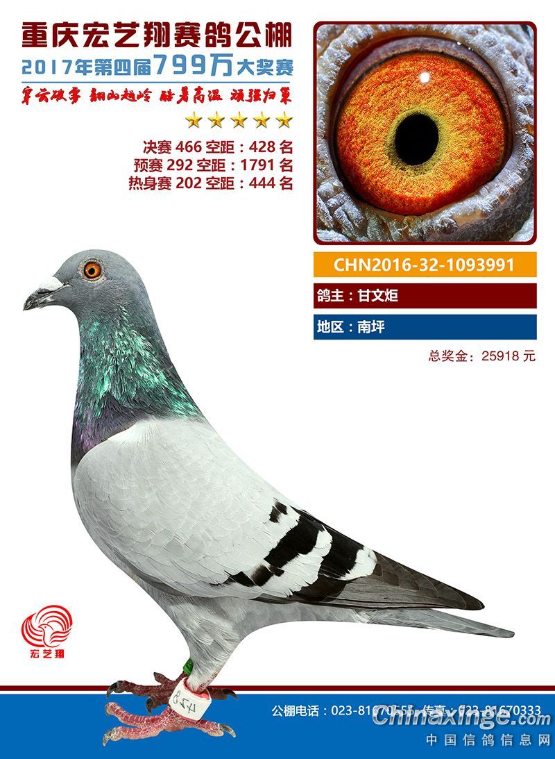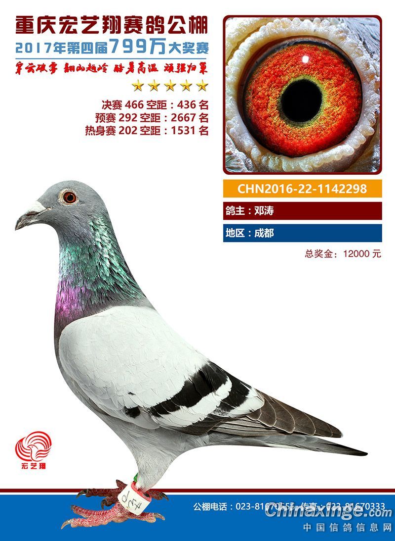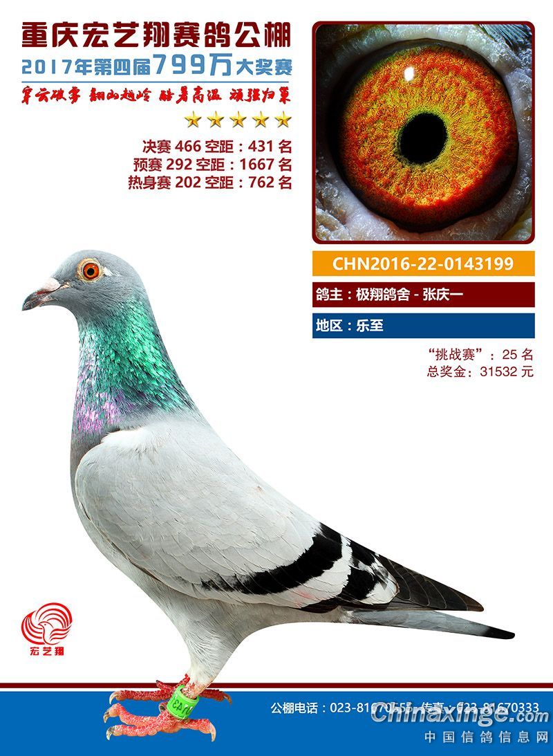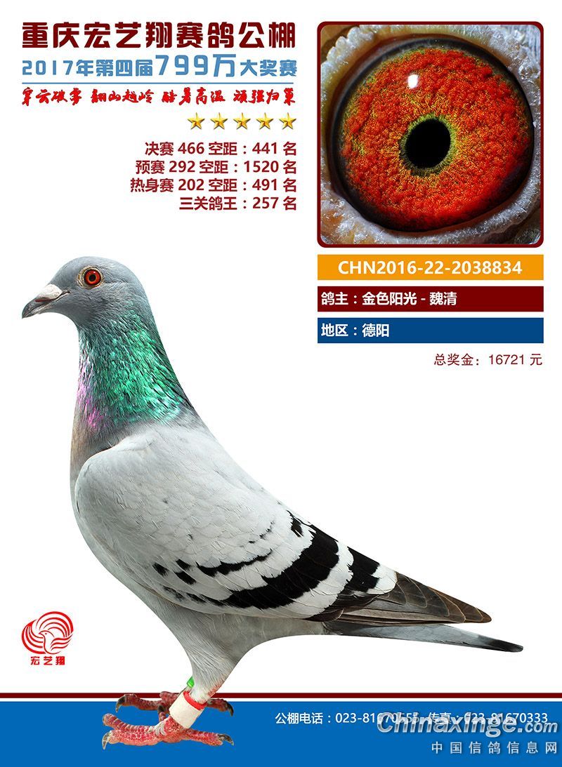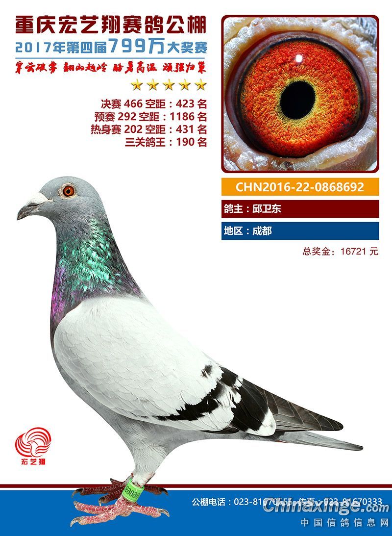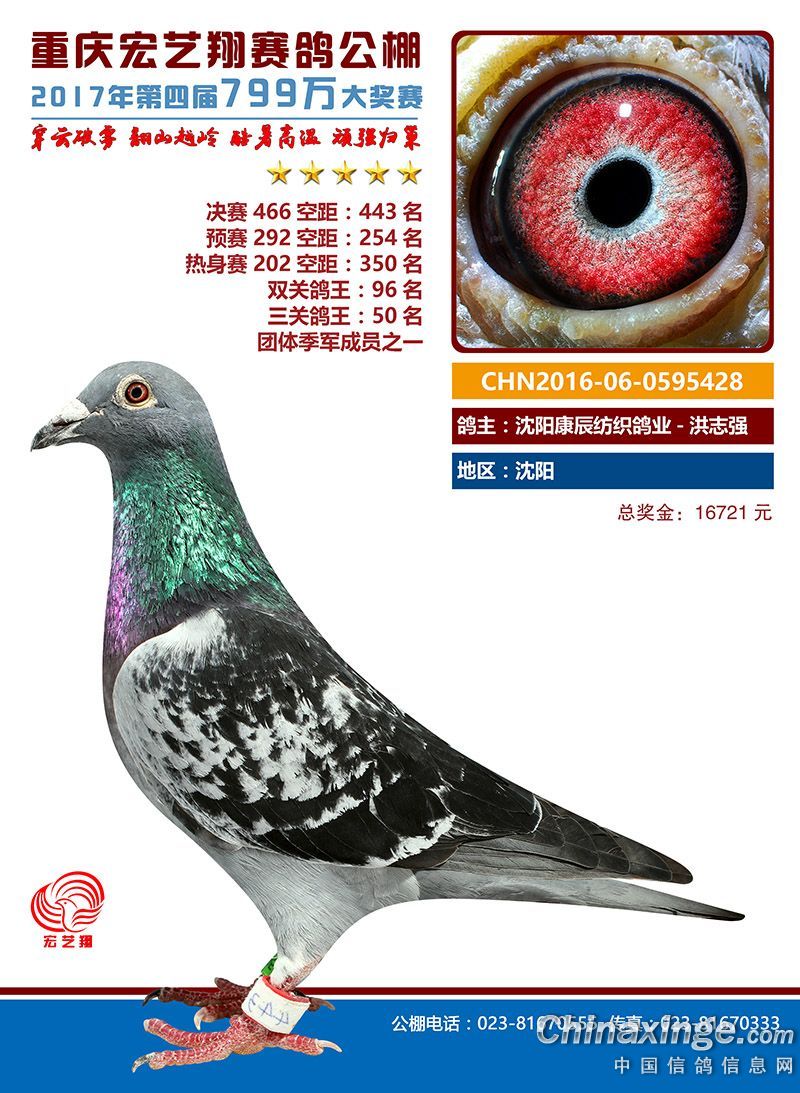宏艺翔赛鸽春季获奖鸽421名-450名