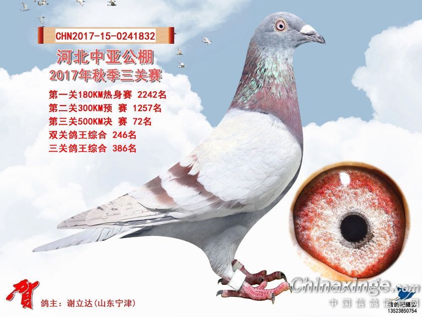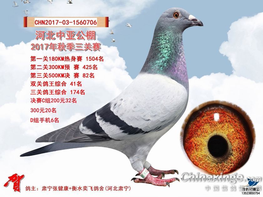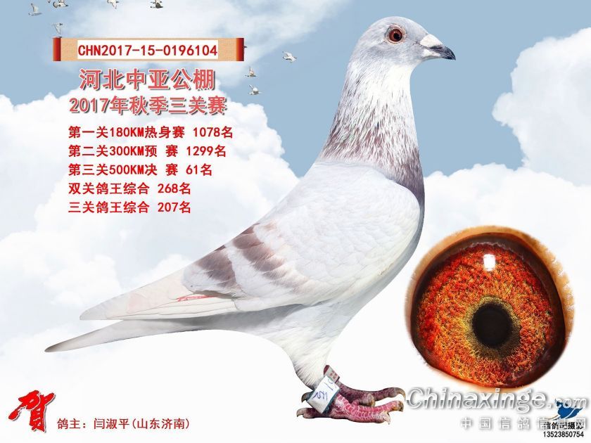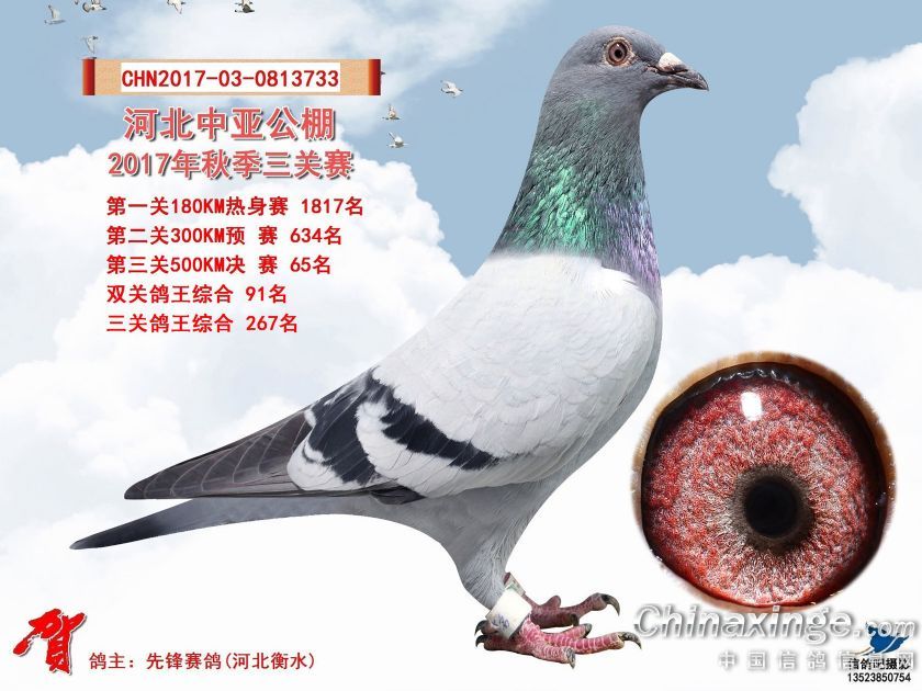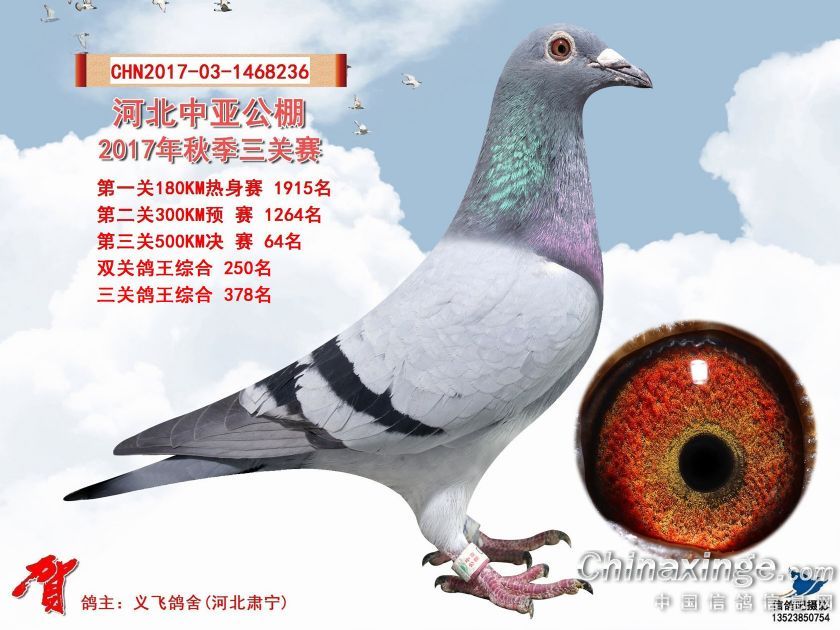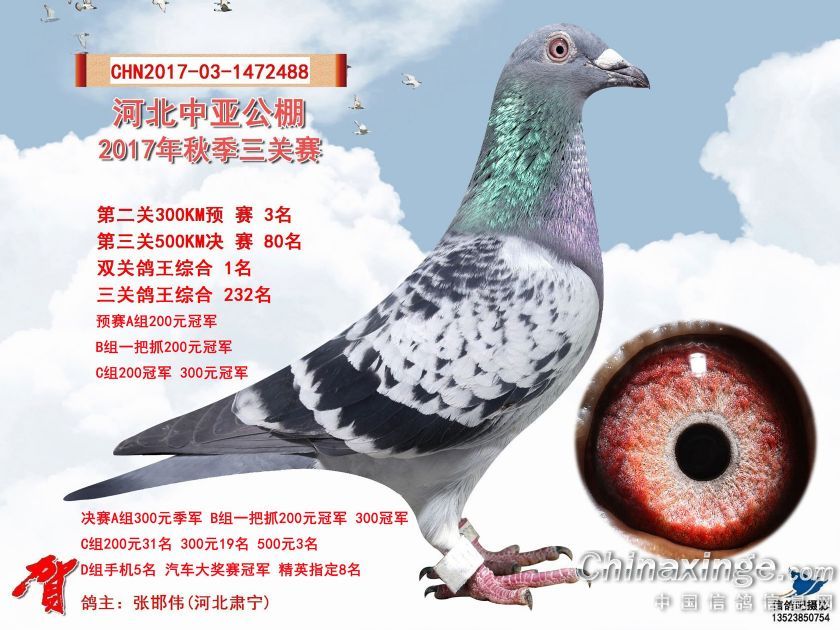 作品说明: 河北中亚公棚2017年秋季三关赛获奖鸽照片61-90名