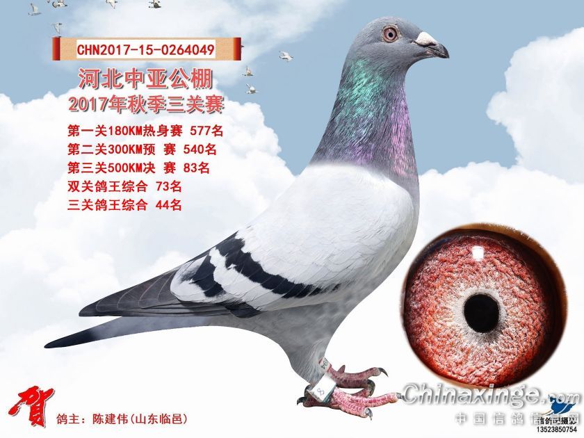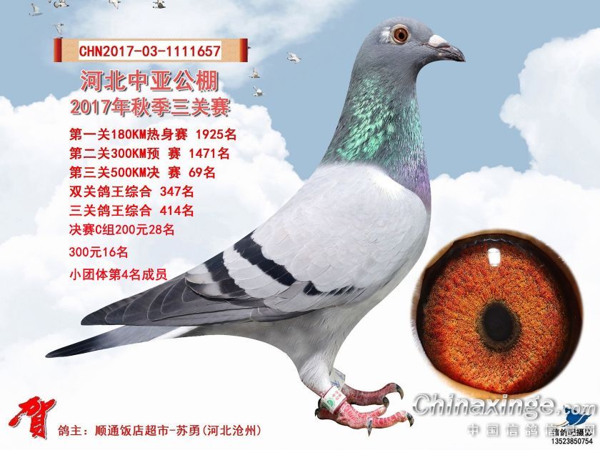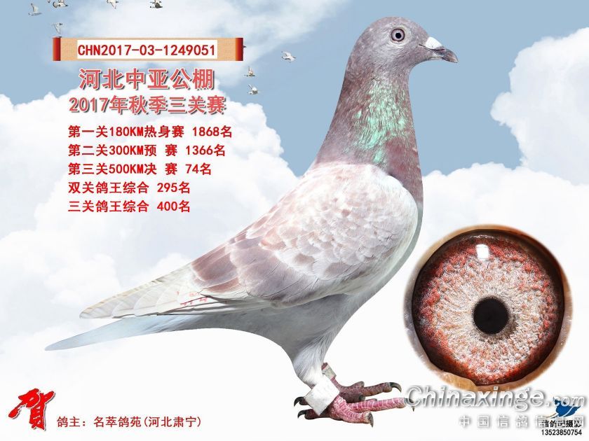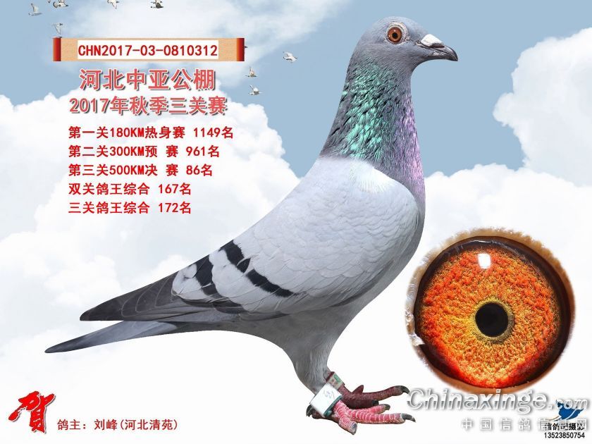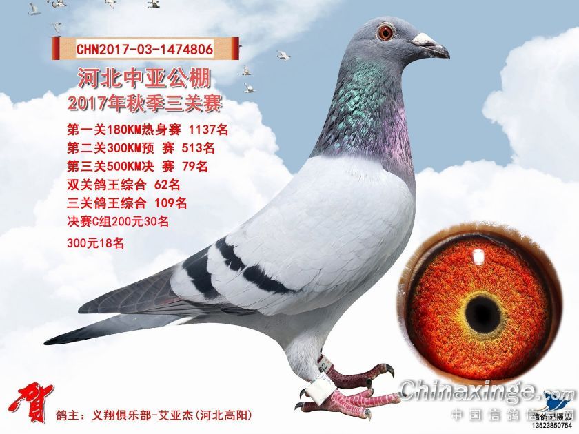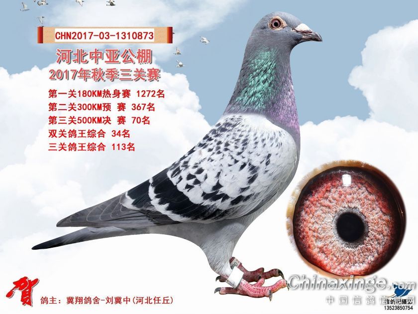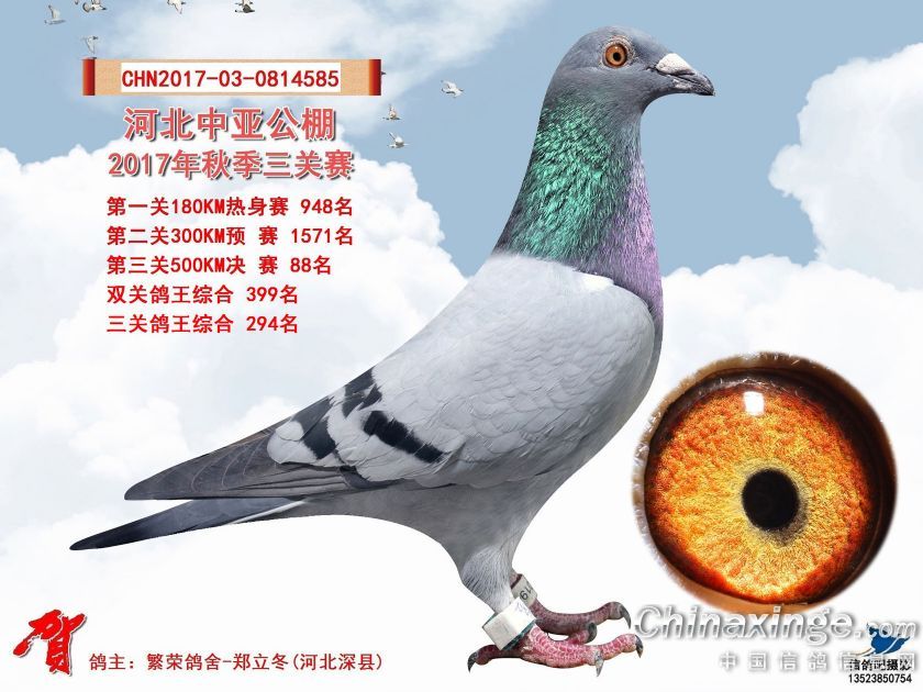作品说明: 河北中亚公棚2017年秋季三关赛获奖鸽照片61-90名