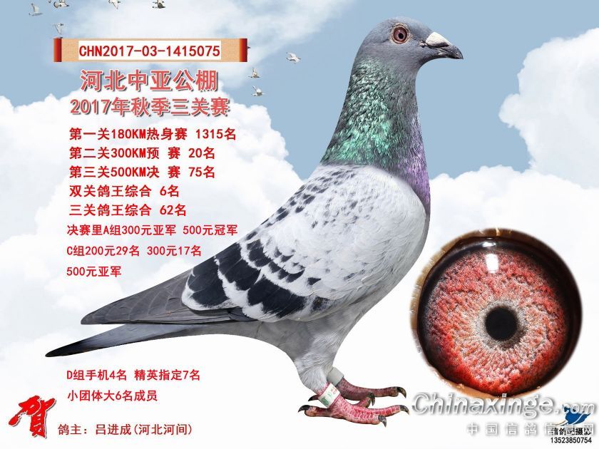 河北中亚公棚2017年秋季三关赛获奖鸽照片61-90名